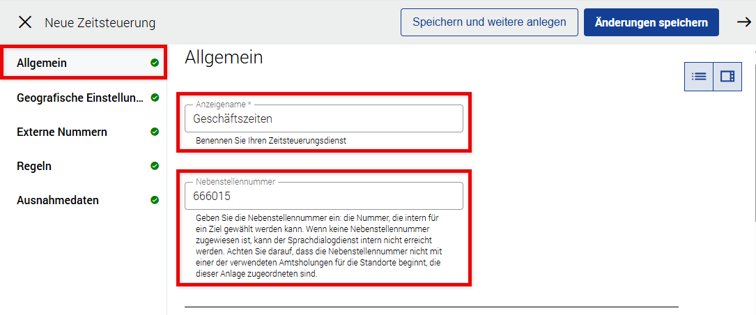 Anzeigename | Weist dem Zeitsteuerungsdienst einen Namen zu. Dies ist ein Pflichtfeld und kann bis zu 50 Zeichen lang sein. Es gelten die gleichen Regeln wie im Abschnitt Telefonnebenstellen. |