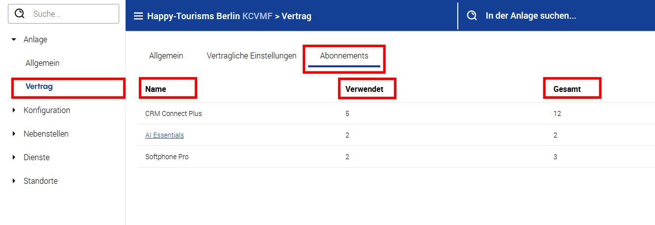 Vertrag (Abonnements & Beschränkungen)