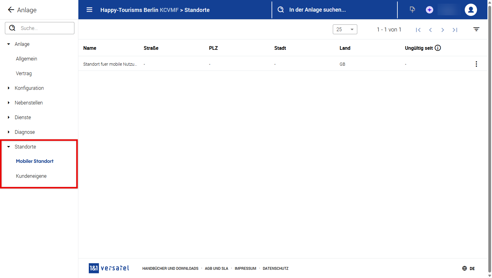 Standorte (Mobiler Standort und Kundeneigene)