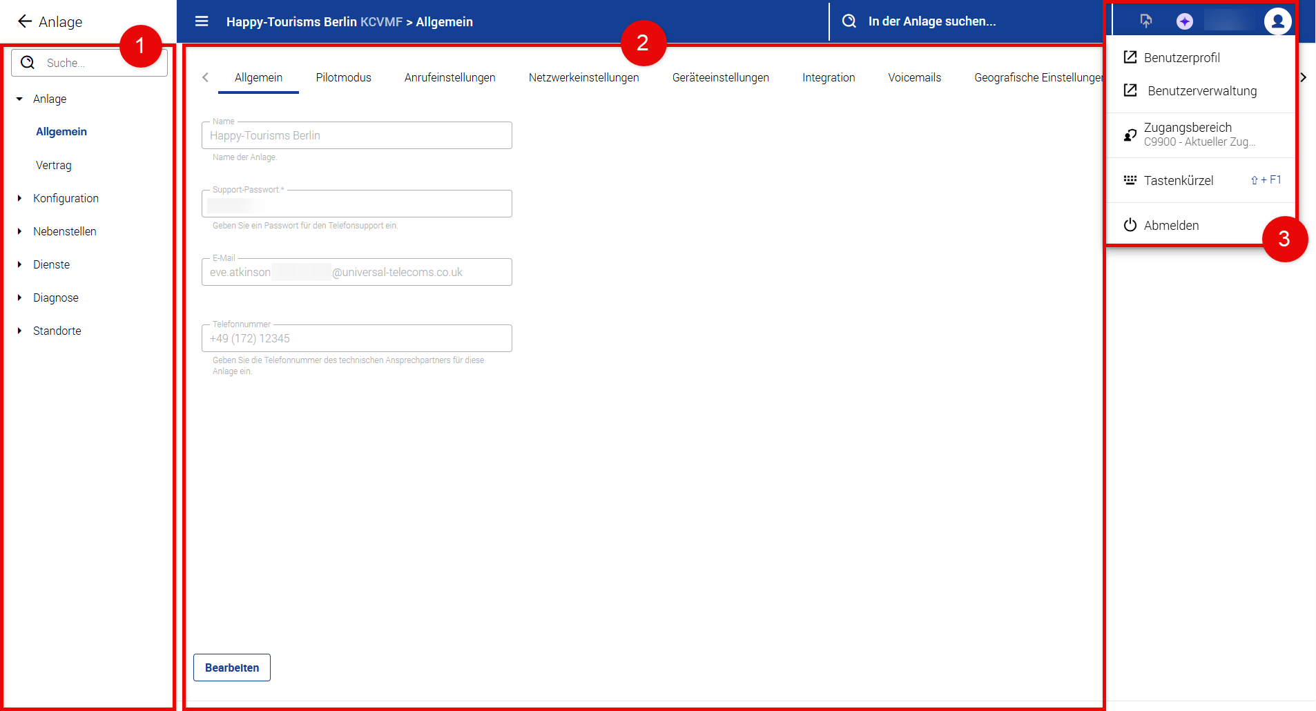 Support -Passwort | Das Passwort, das der technische Kontakt des Kunden beim Support-Team angeben muss, um nachzuweisen, dass er Zugriffsrechte auf das Konto hat. Wird bei der Erstellung der Anlage festgelegt, kann aber zu einem späteren Zeitpunkt geändert werden. |