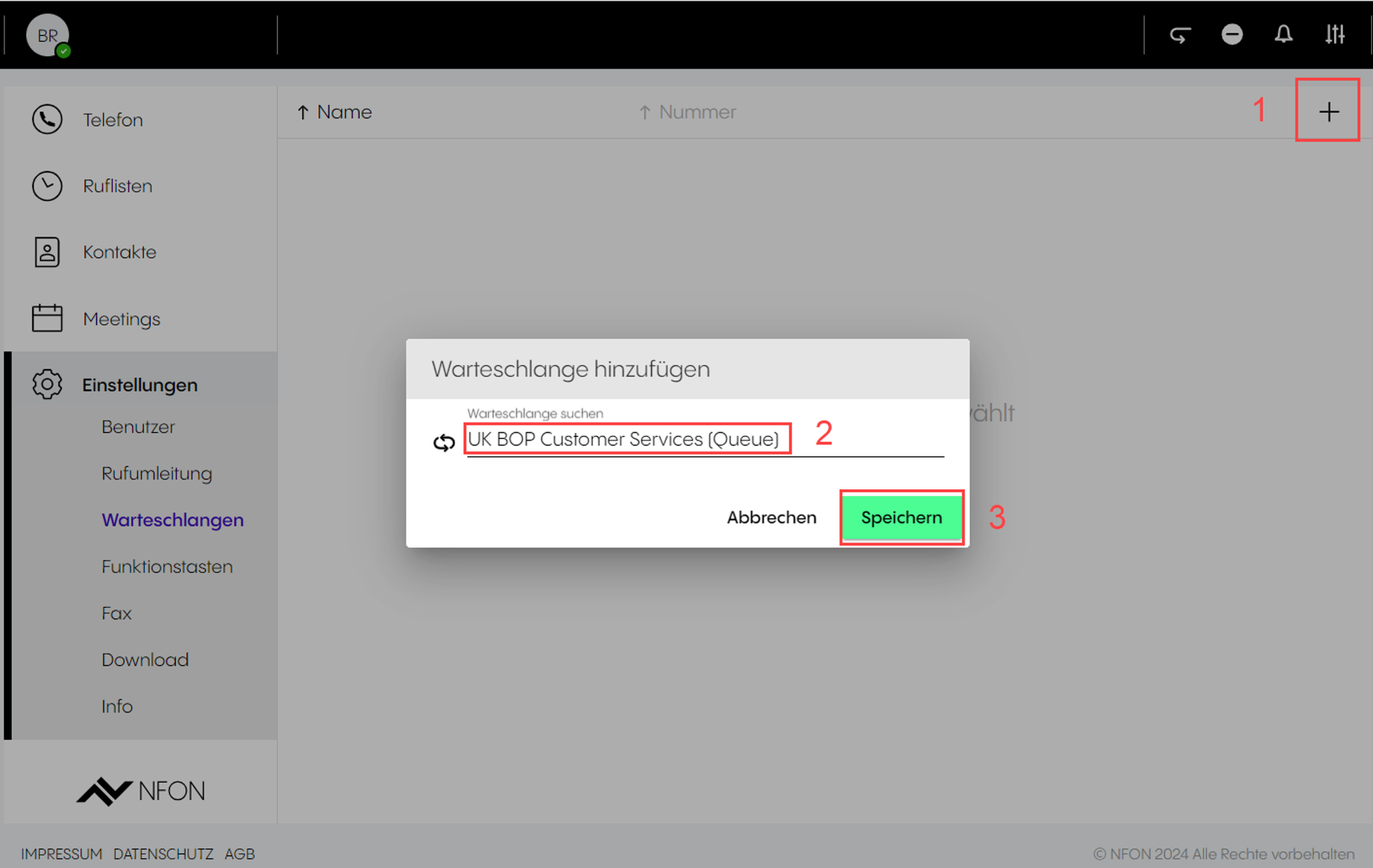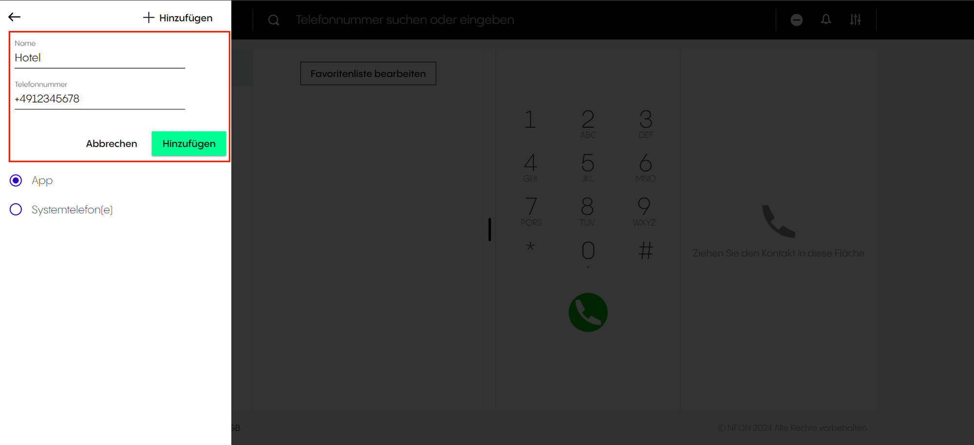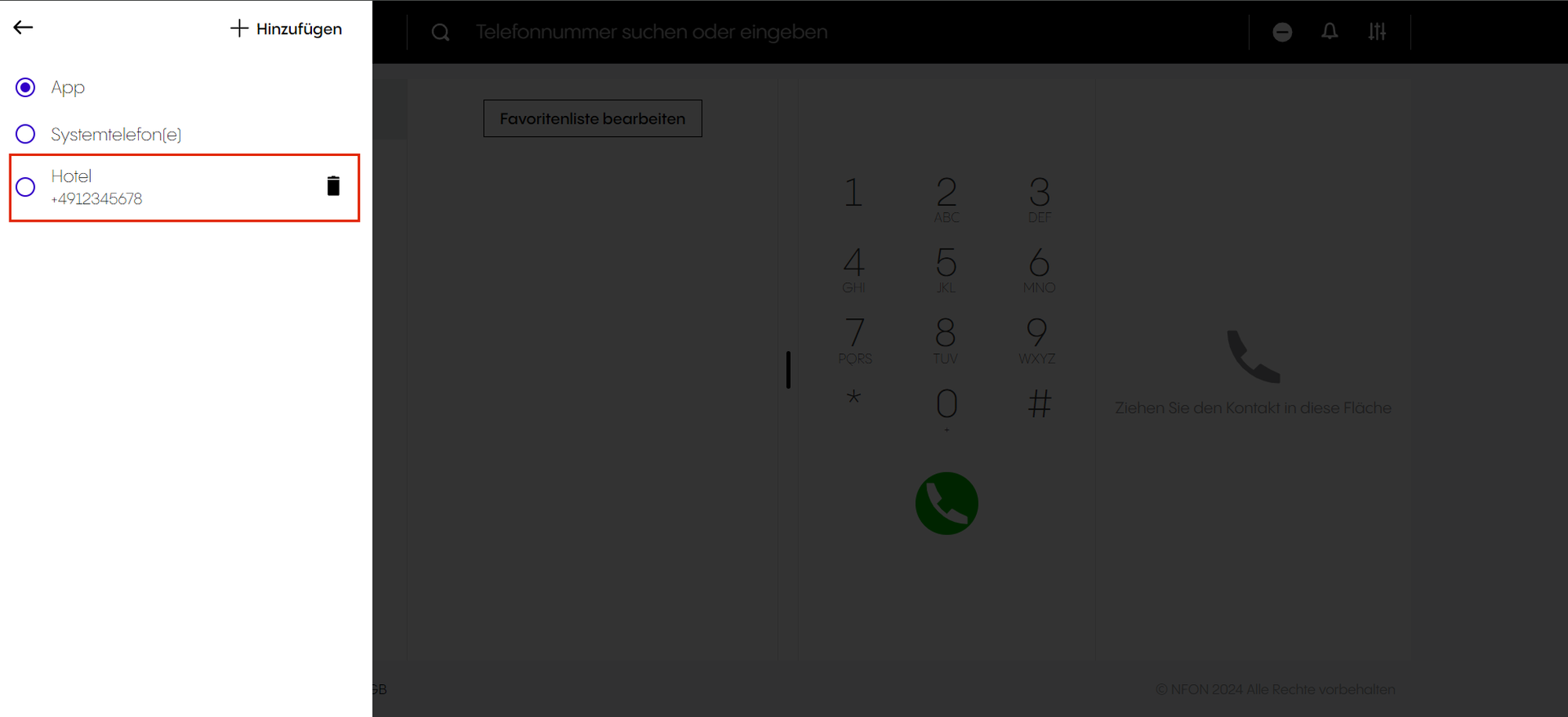 ⇒ Ihre gerade hinzugefügte Rufnummer erscheint jetzt auf der Liste.