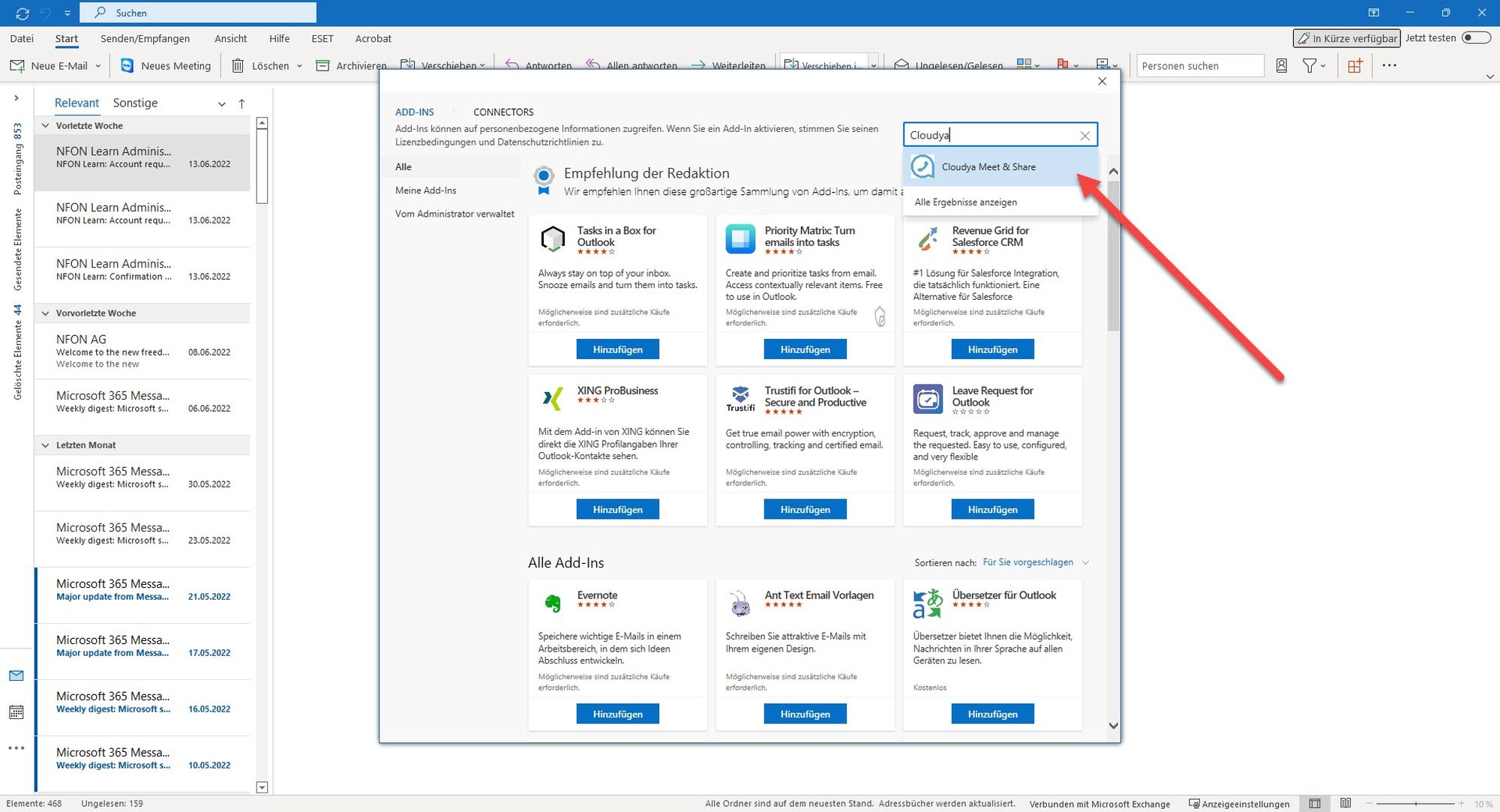 Das 1&1 Business Phone Meet & Share Add-in in der Outlook Desktop App installieren