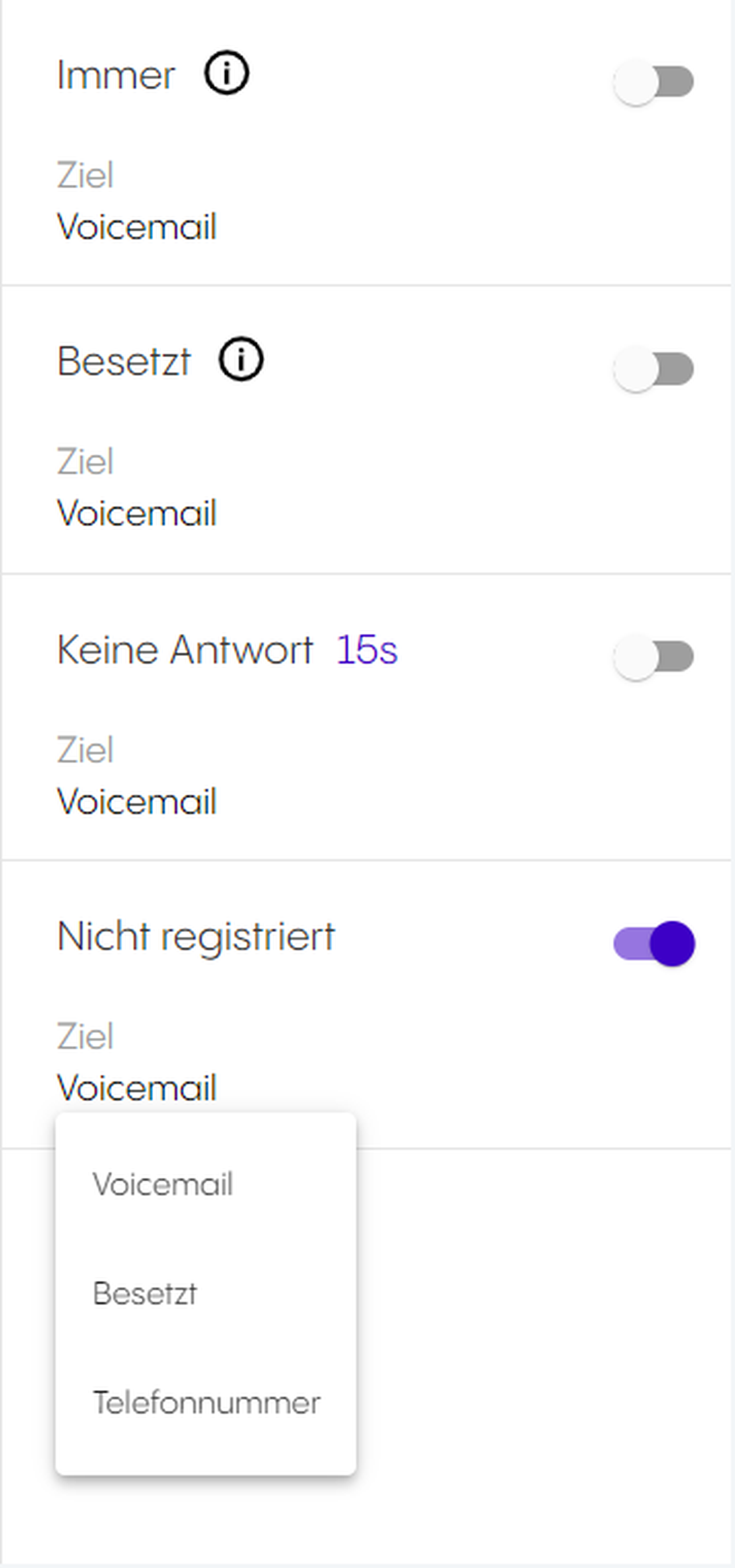 Standardmäßig ist die App als Ihr primäres Endgerät eingestellt. Das bedeutet, dass bei einem eingehenden Anruf die App den Anruf anzeigt und klingelt. Sollten Sie dies ändern möchten, ändern Sie das ausgewählte Endgerät.
