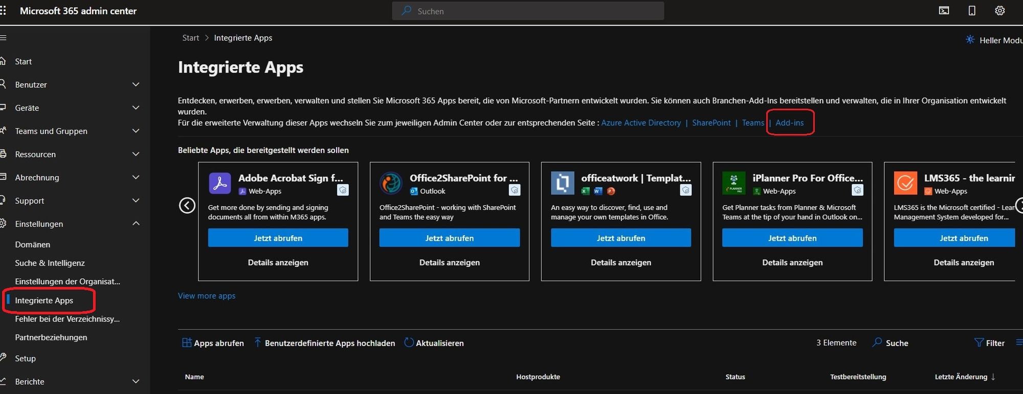 2. Gehen Sie zu Integrierte Apps unter Einstellungen > Integrierte Apps im Menü auf der linken Seite und klicken Sie auf Add-ins.