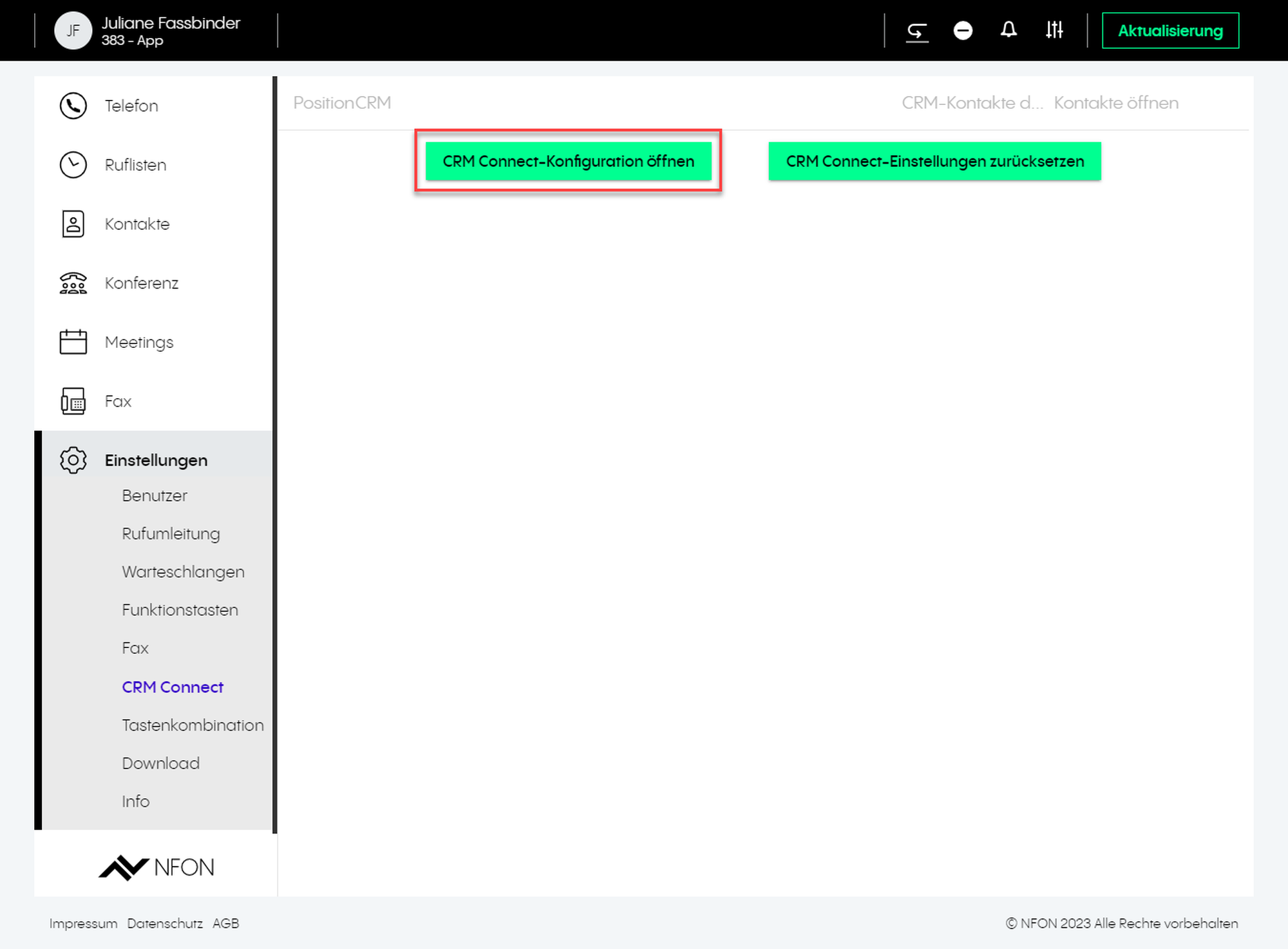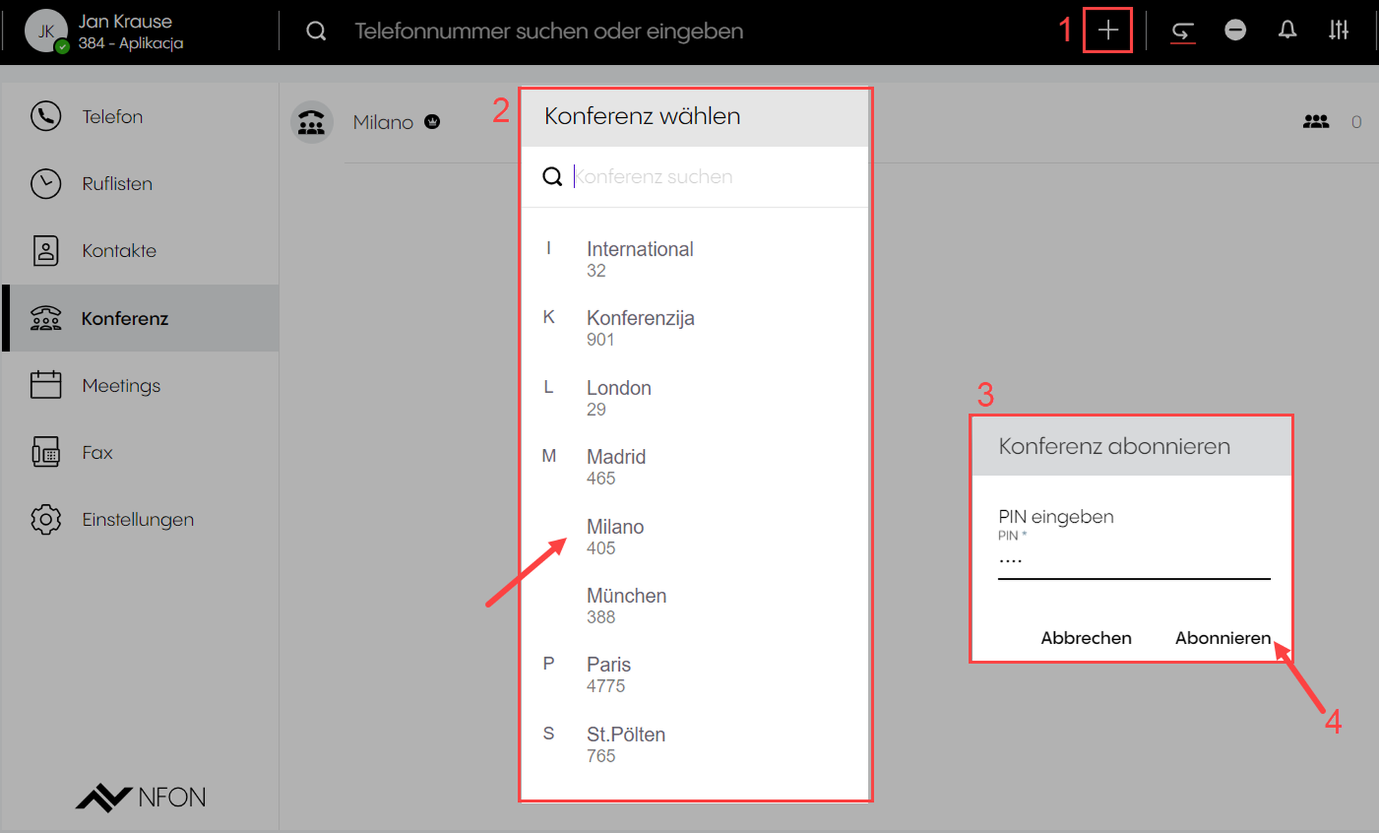 Die Nebenstellennummer aus dem Admin Portal muss mit dem Nutzer in der User Management Application verbunden werden.