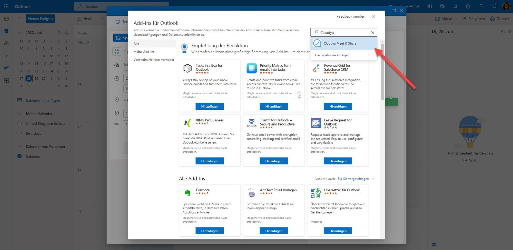 Das 1&1 Business Phone Meet & Share Add-In in der Outlook Web App installieren