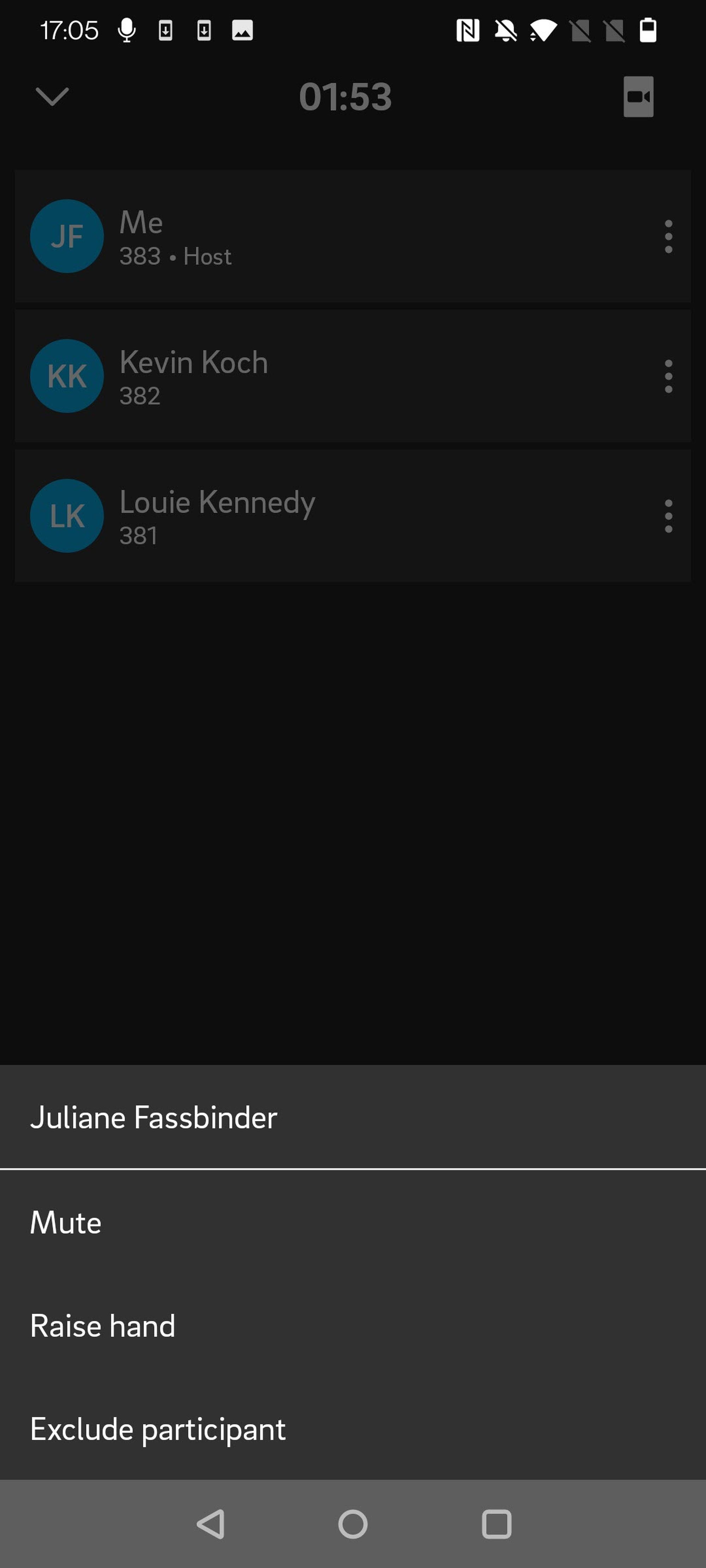 Als Moderator sehen Sie drei Punkte neben den Namen der Teilnehmer und Ihrem eigenen Namen.