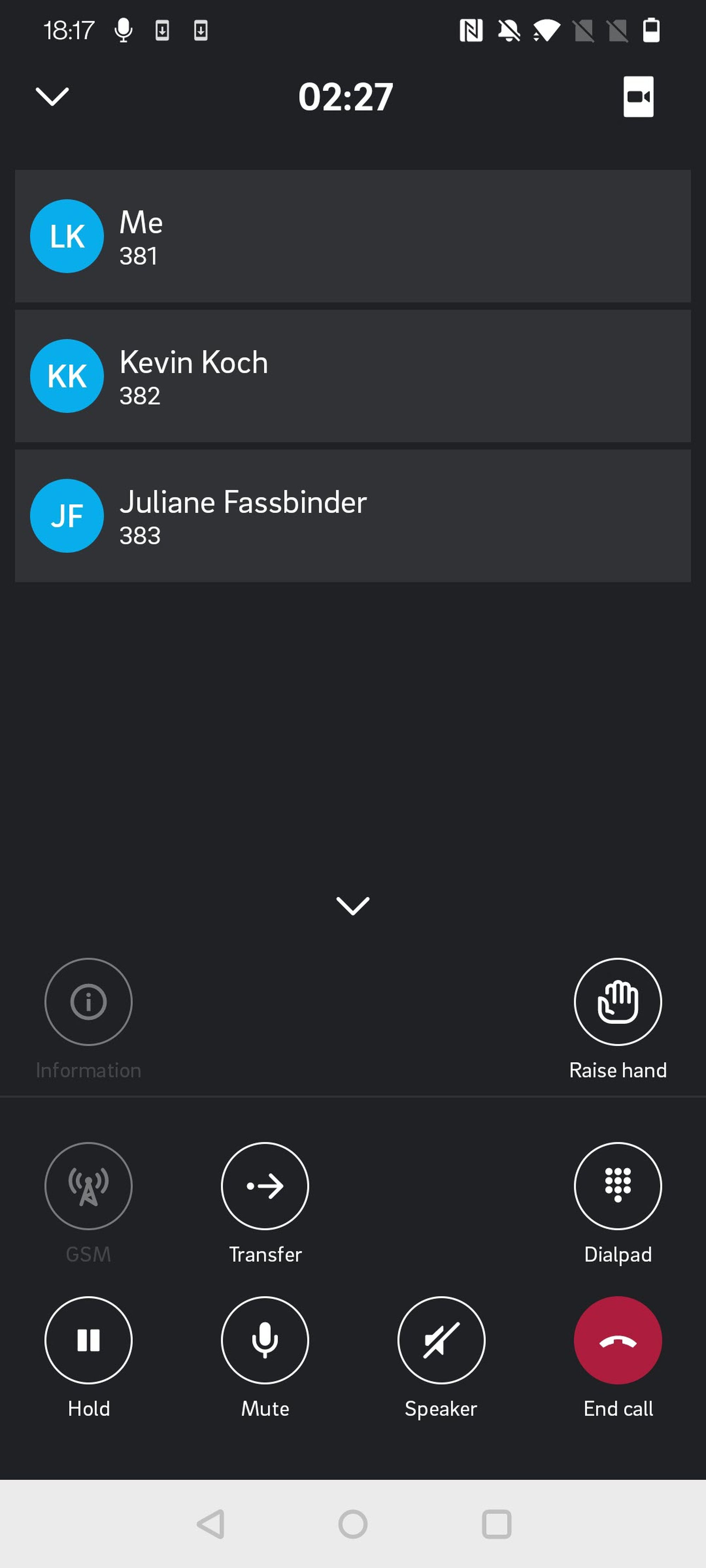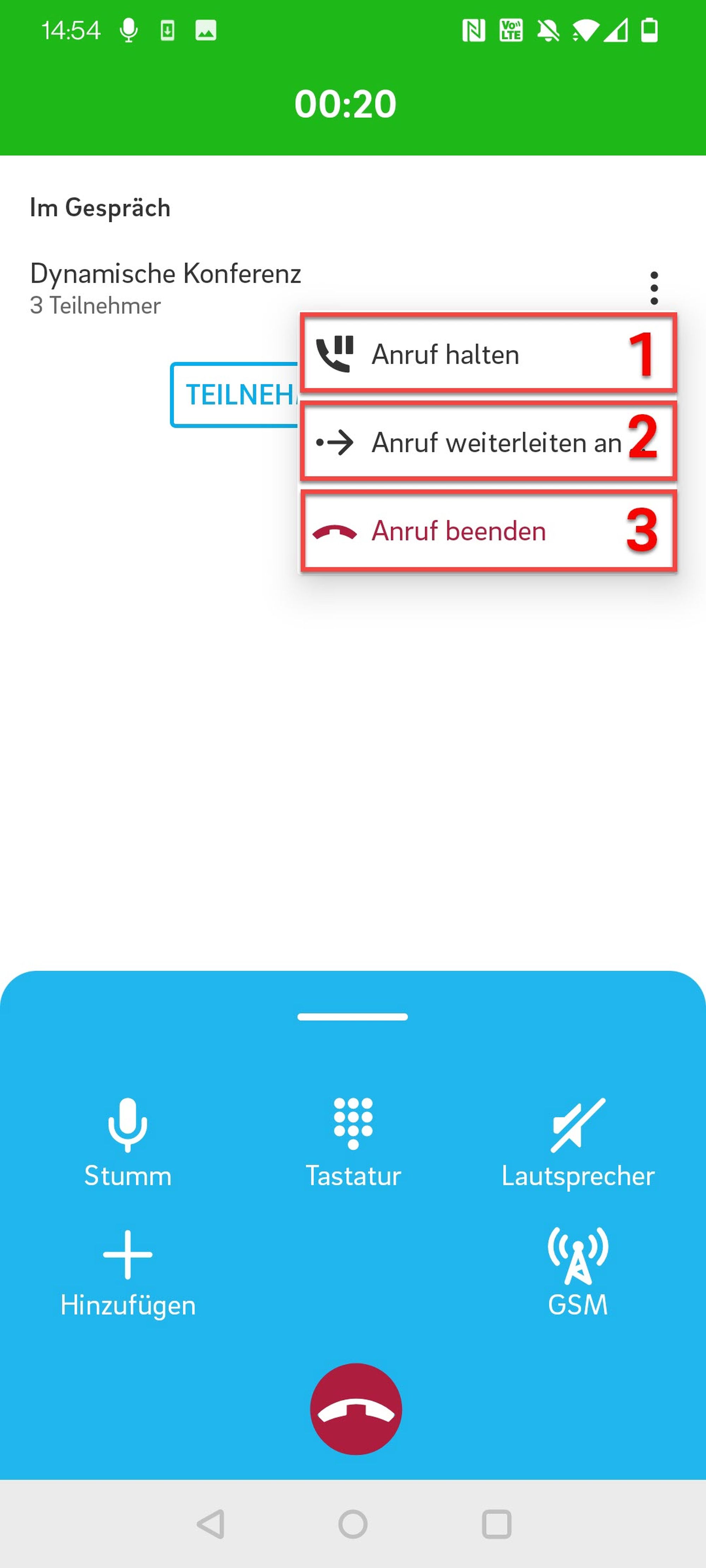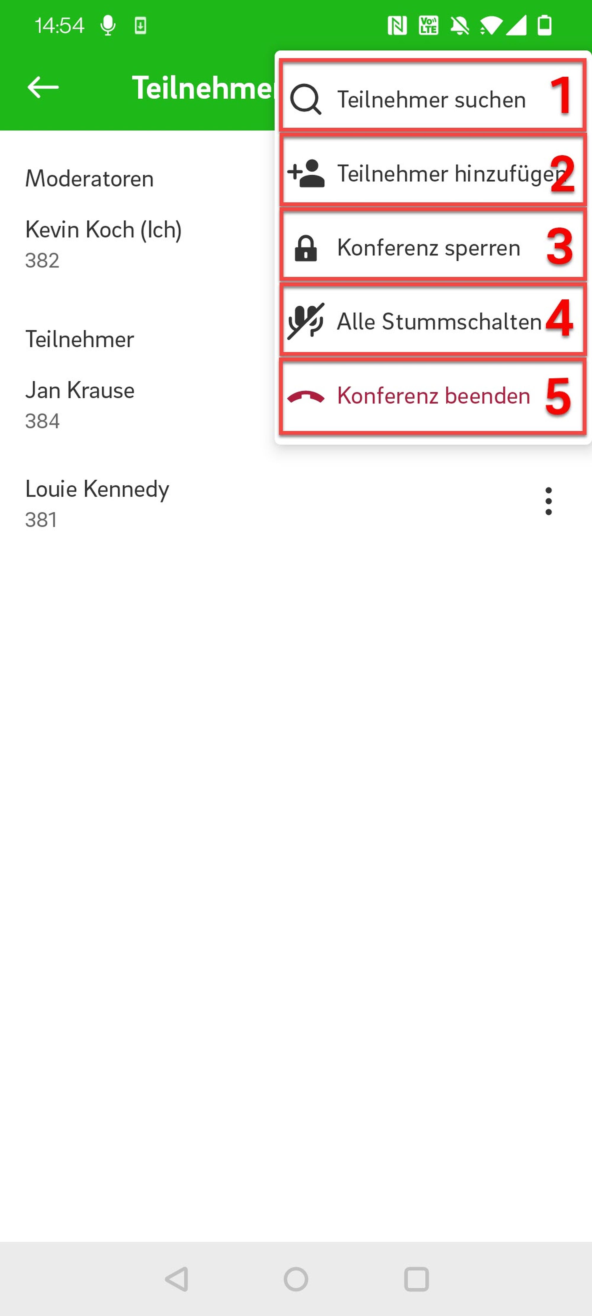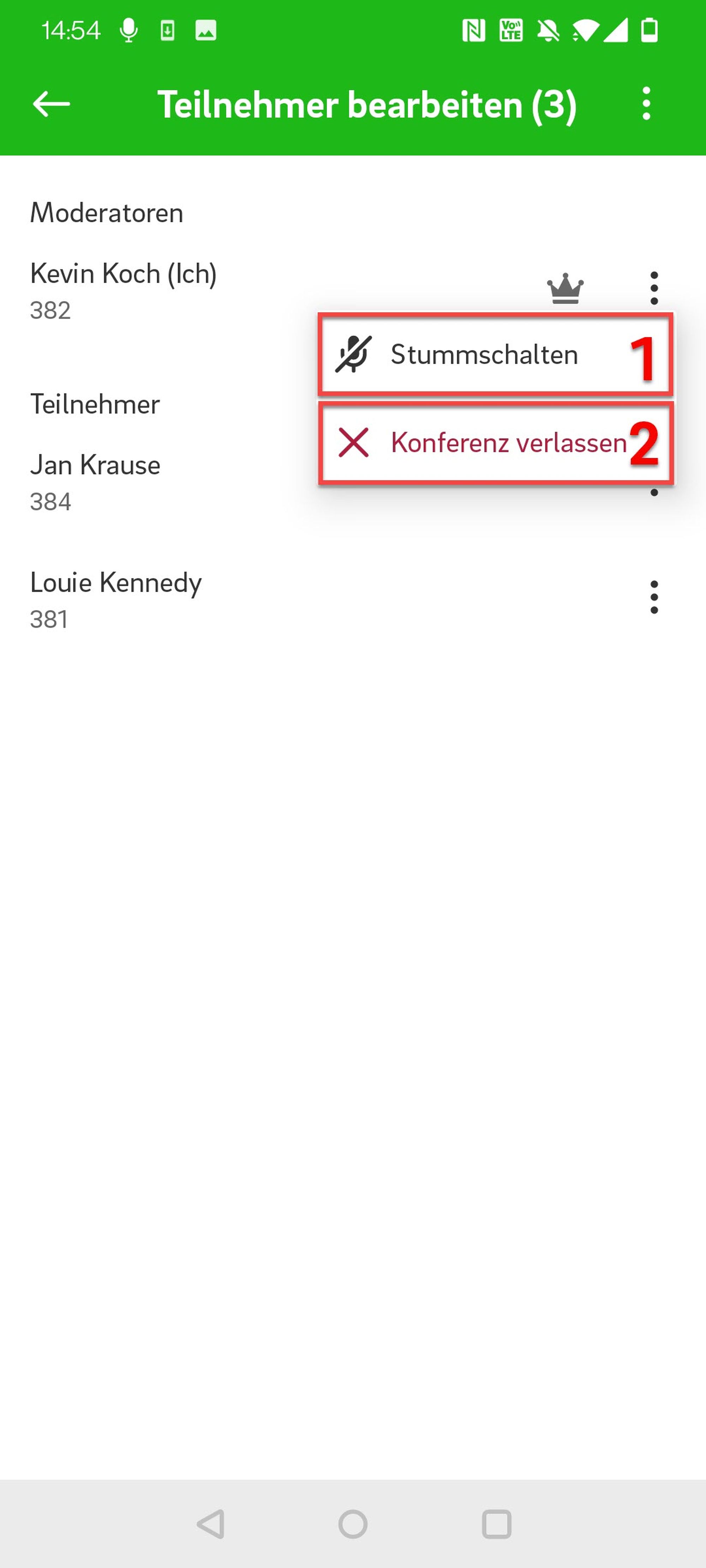 Konferenz verlassen (damit wird der Anruf für alle Teilnehmer beendet)