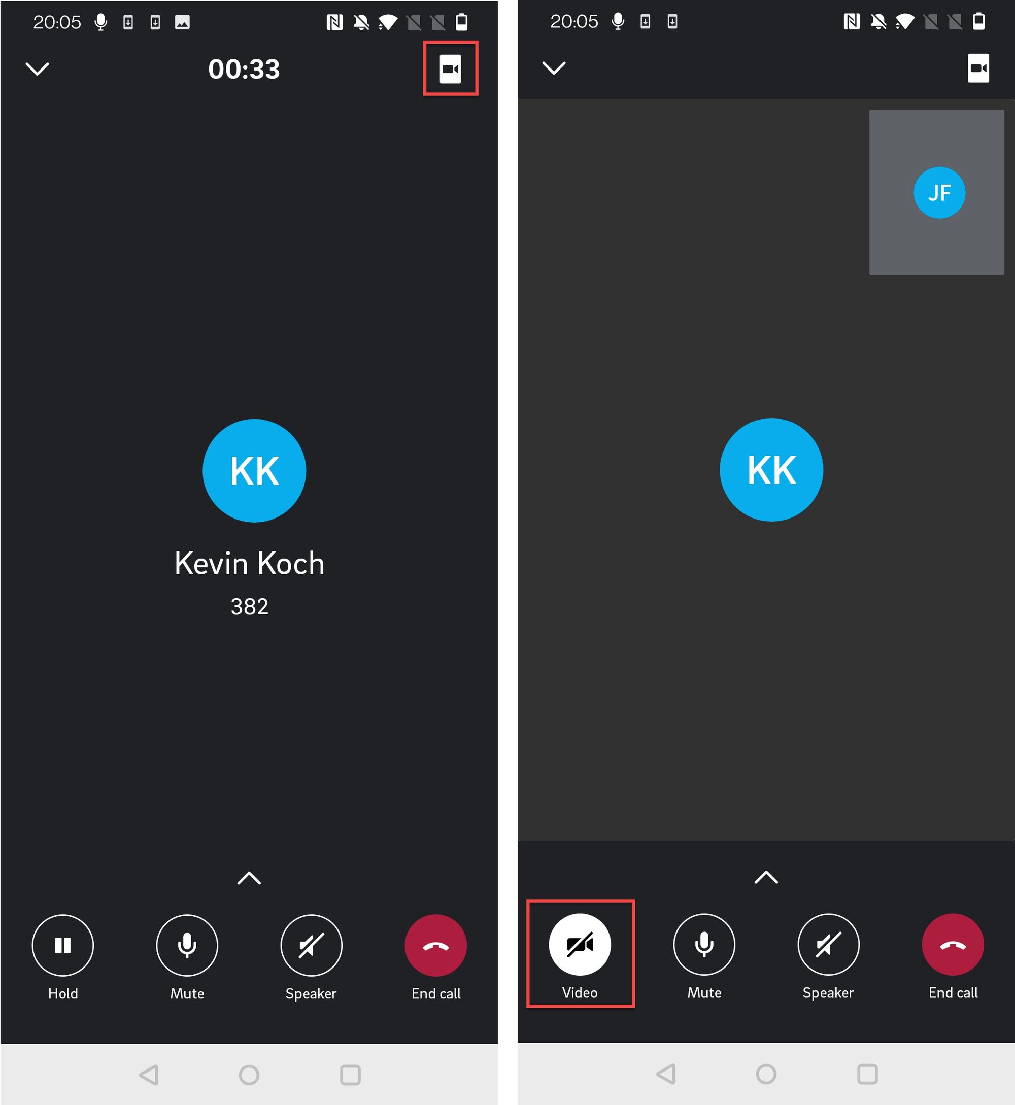 Bei einem 1:1-Audioanruf haben Sie auch die Möglichkeit, zu einem Videoanruf zu wechseln.