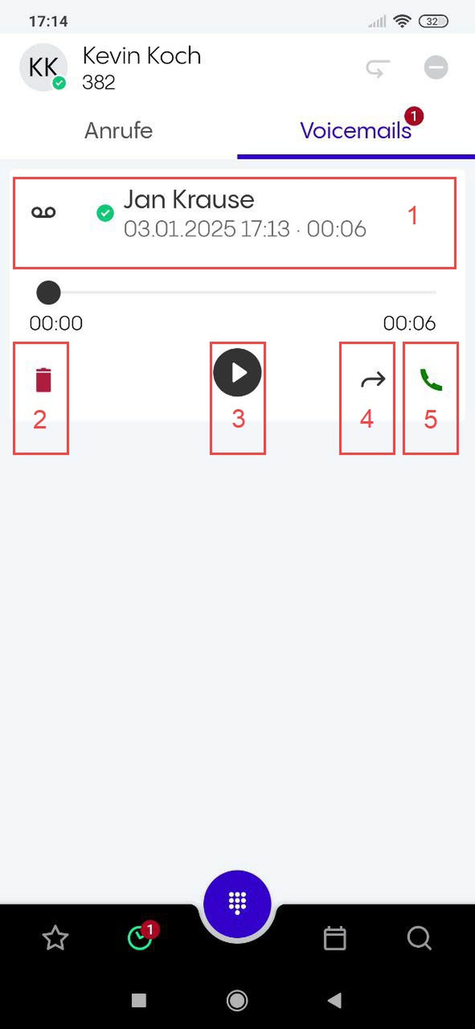 Zum Voicemails-Tab wechseln