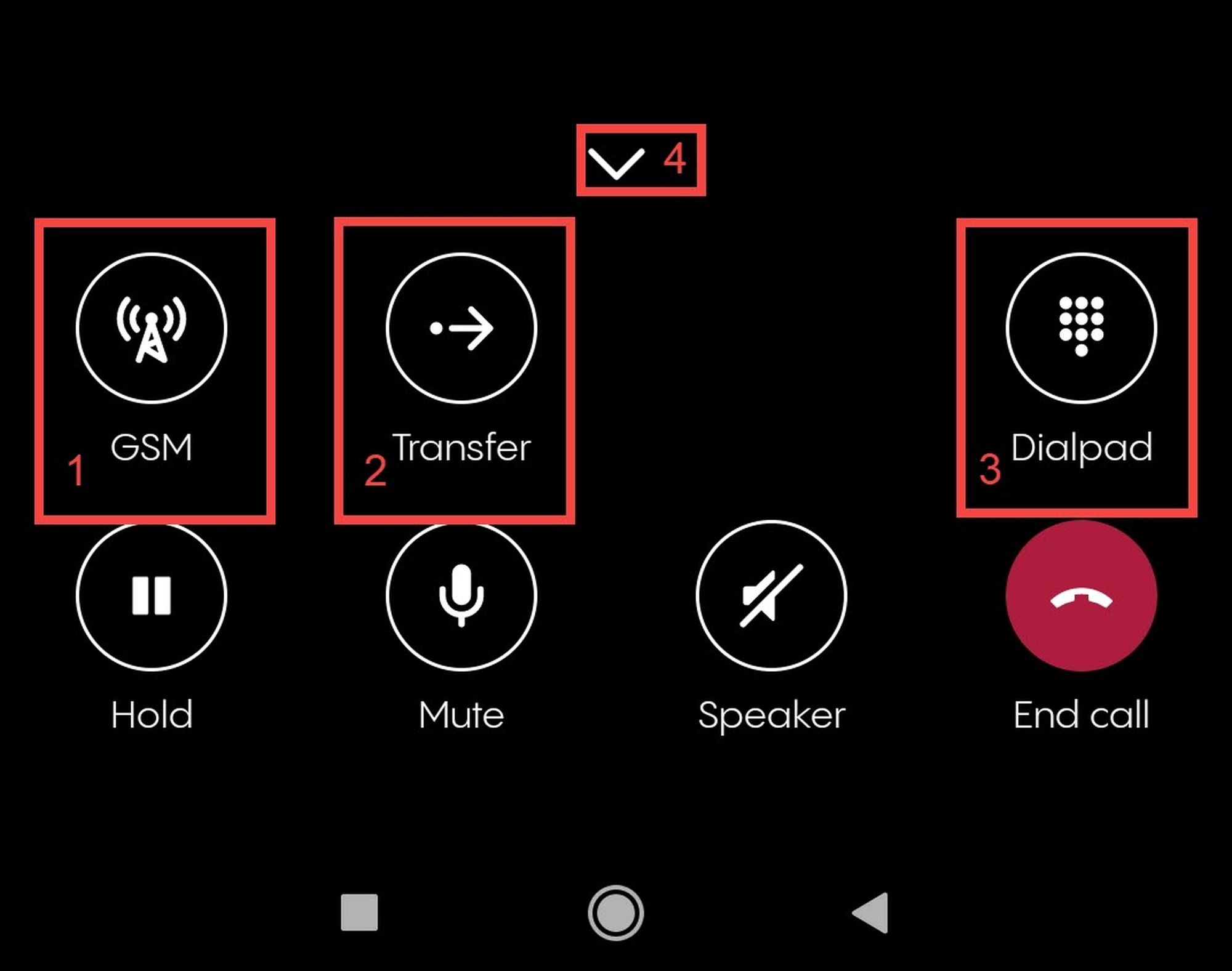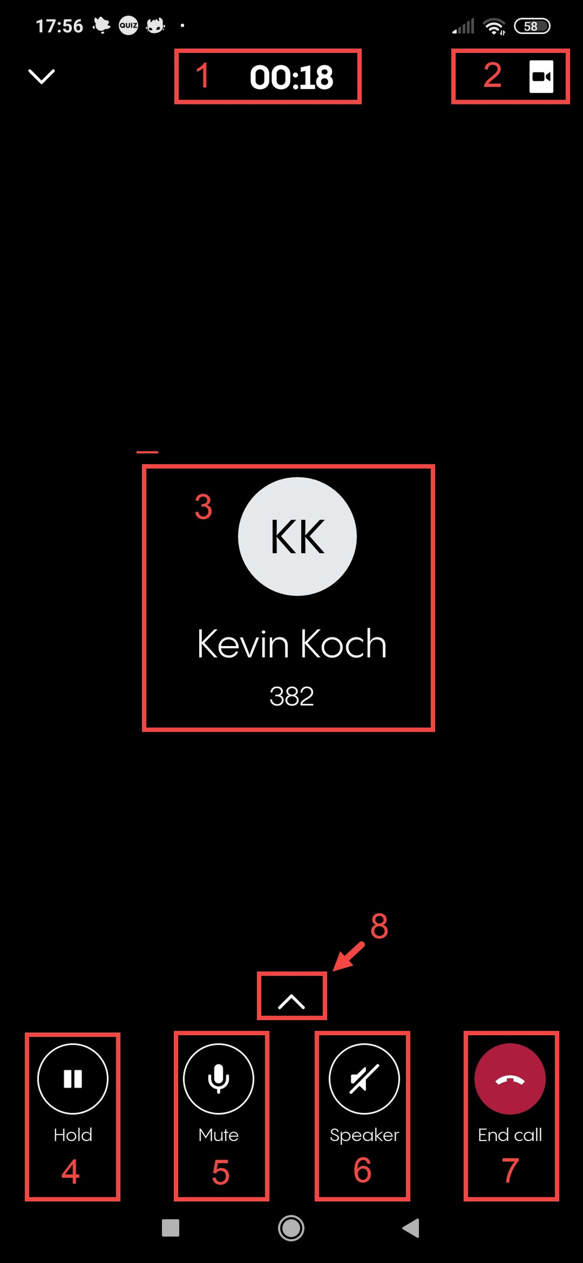 Erweiterte Anrufoptionen aufrufen (Pfeil nach oben)