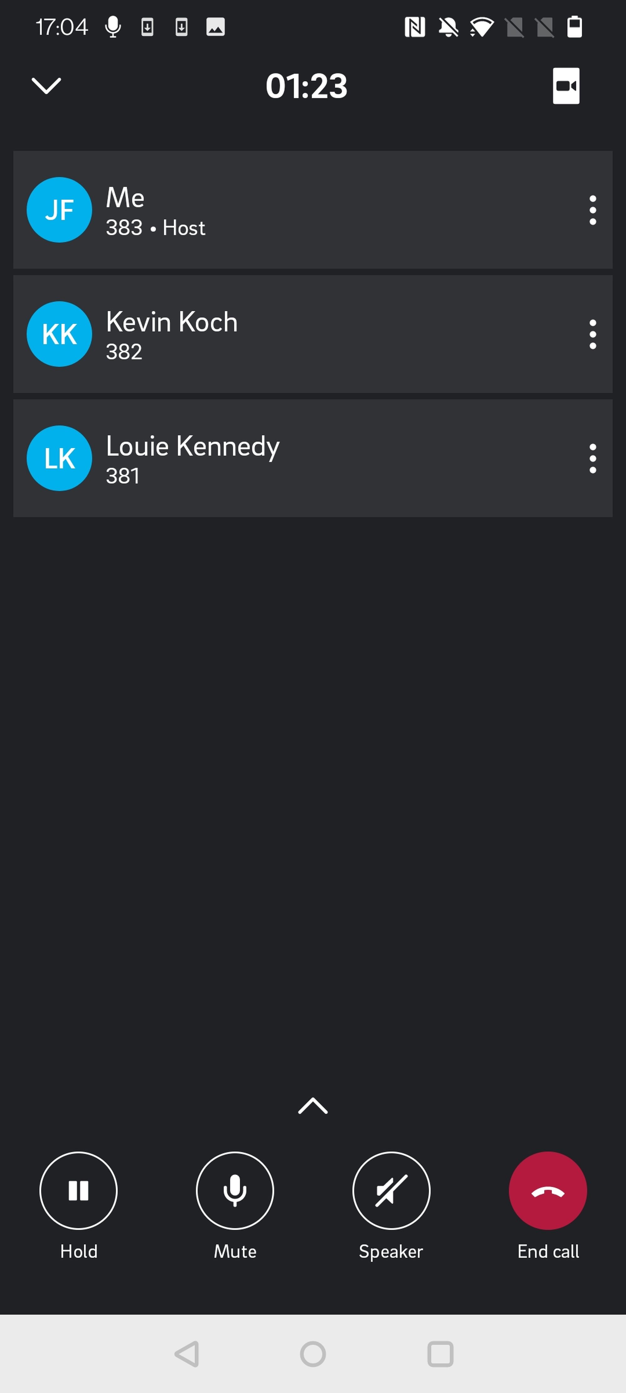 Tippen Sie auf den Pfeil nach oben, um auf die erweiterte Anrufoptionen zuzugreifen. In diesem Menü, als Moderator, können Sie: