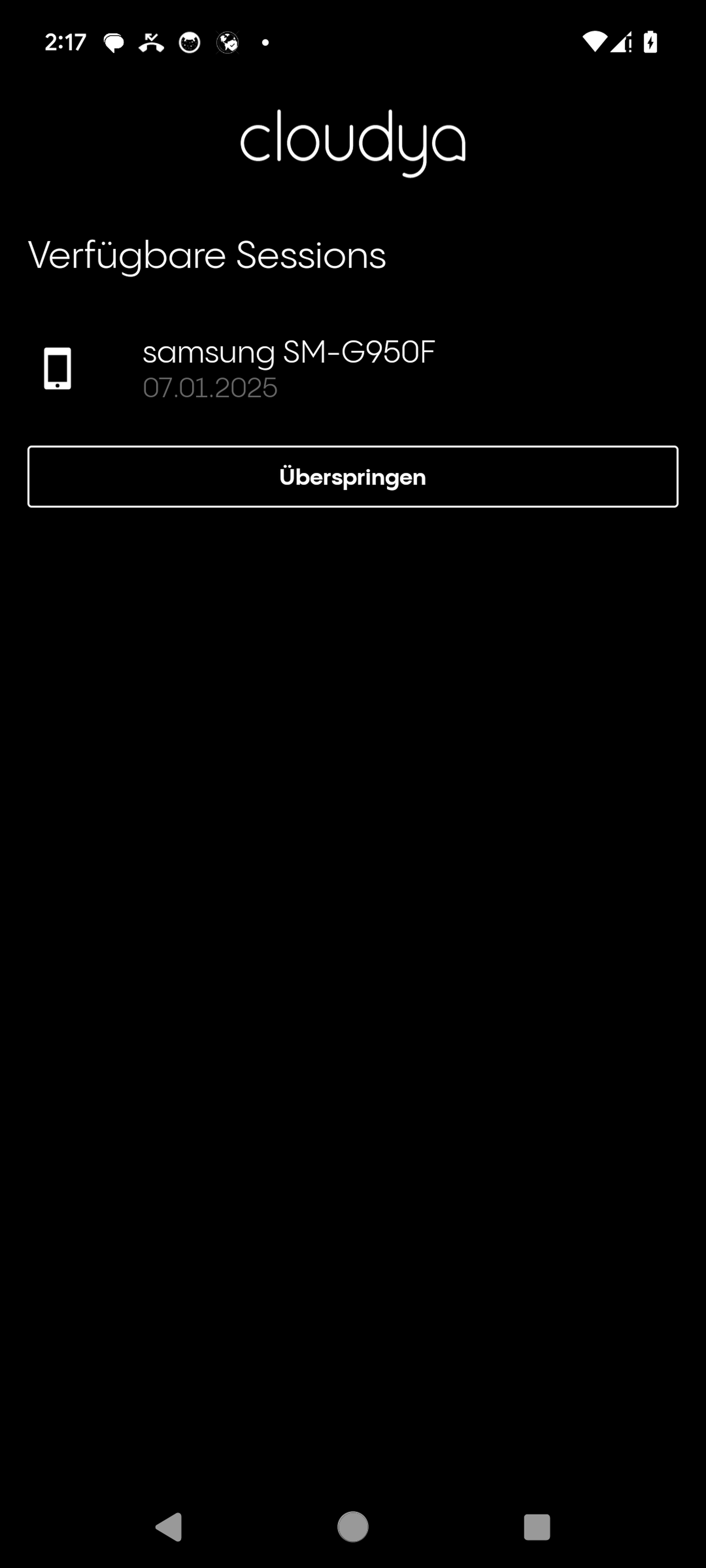 Wenn Sie auf einem anderen Gerät bei einer der Nutzer-Apps angemeldet sind oder waren, können Sie eine bestehende Session mit den entsprechenden Einstellungen fortsetzen oder eine neue Sitzung starten.