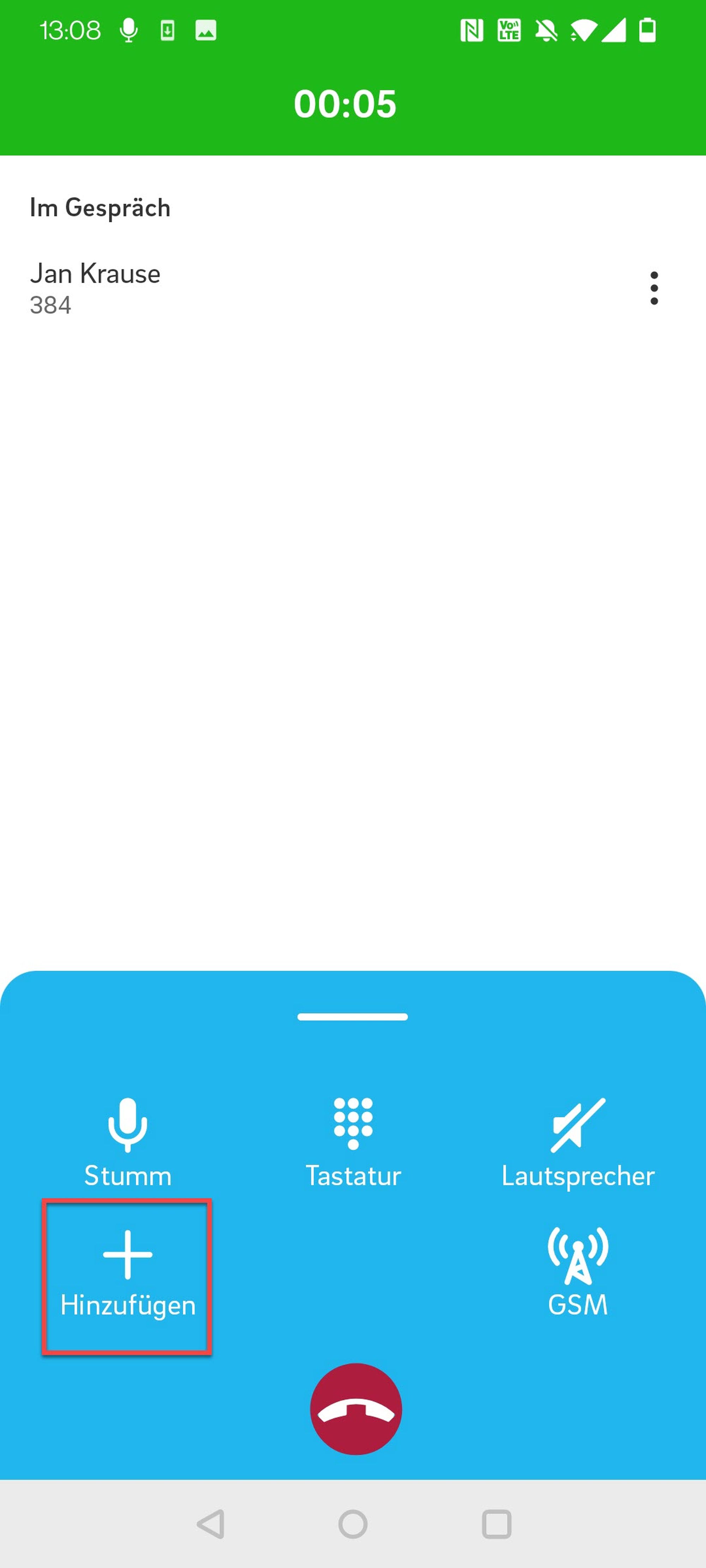1. Tippen Sie während eines Anrufs auf den Button Hinzufügen.