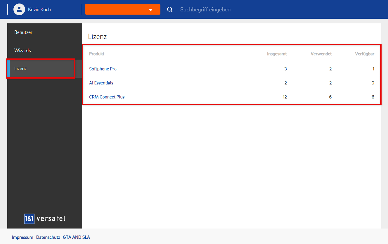⇒ Hier sehen Sie, wie viele Produktlizenzen verwendet werden oder verfügbar sind, sowie die Gesamtzahl der Lizenzen.