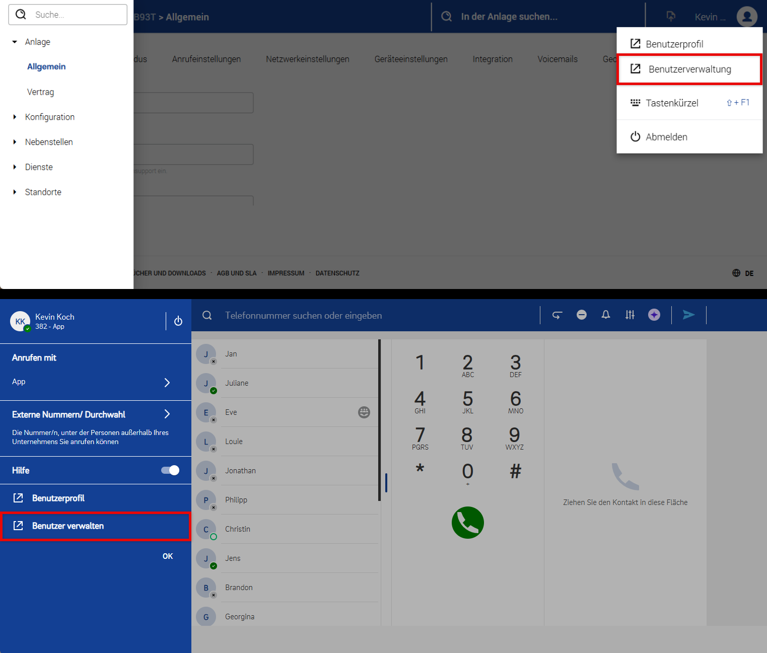 Klicken Sie auf Benutzer verwalten (Web-/Desktop-App) / Benutzerverwaltung (Admin-Portal).