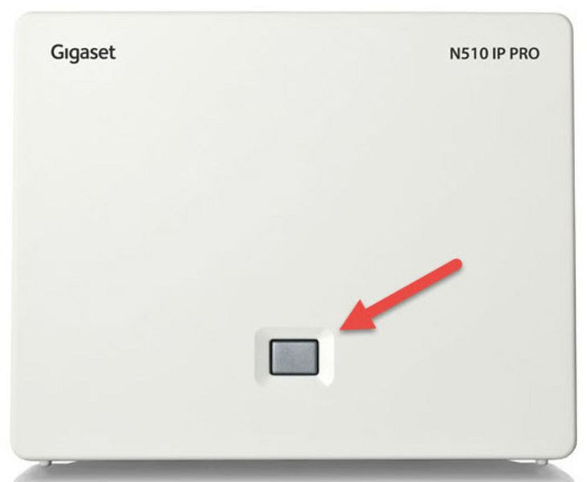 Drücken Sie die Taste an der Vorderseite der DECT-Basisstation für ca. 5 Sekunden.