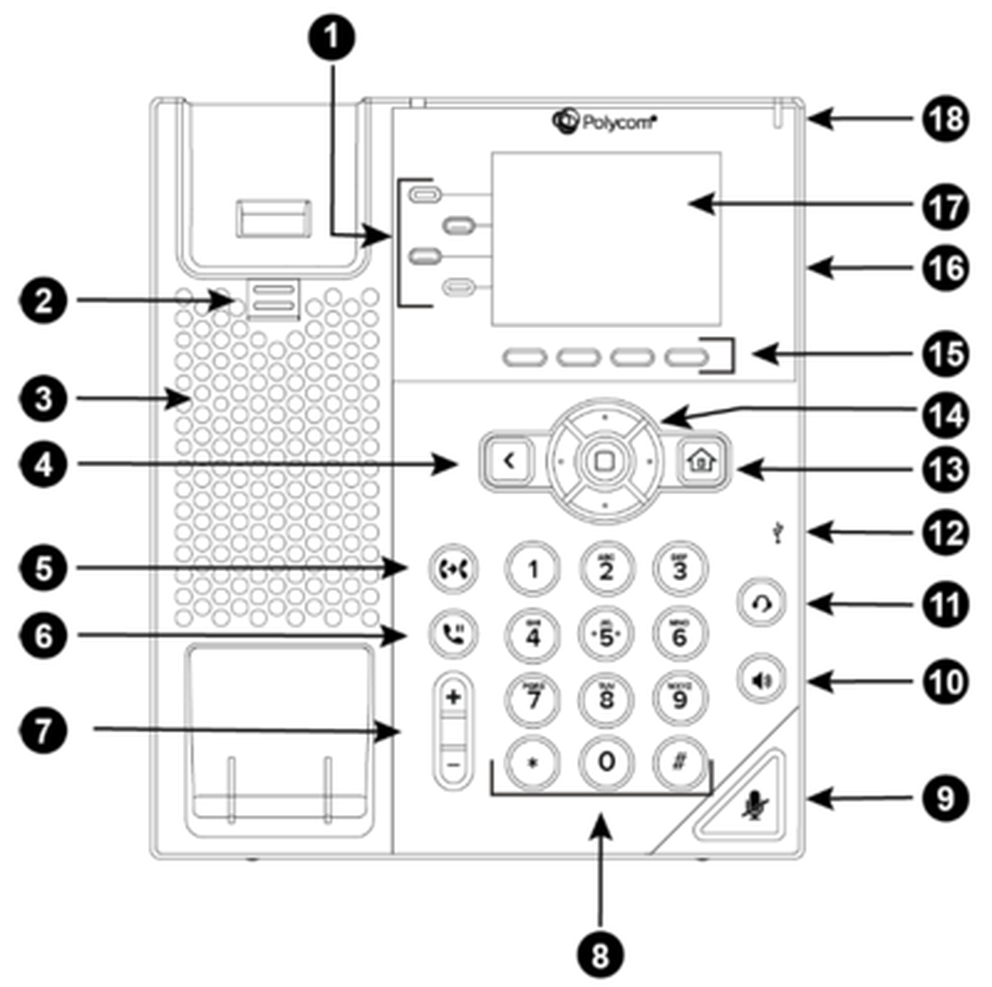 | 12 | USB-Anschluss (nicht verfügbar bei Polycom VVX150) |