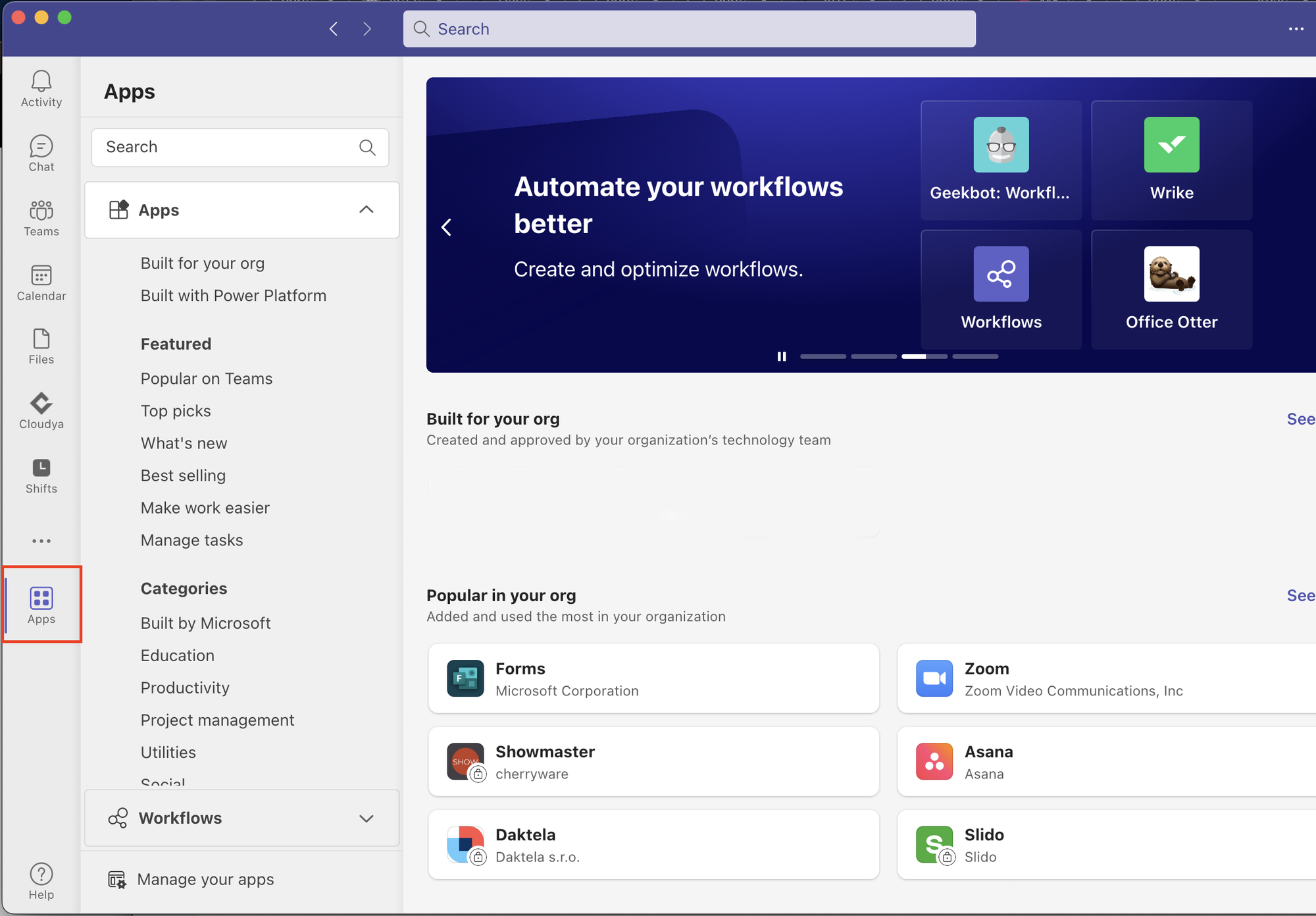 1. in the MS Teams navigation bar, go to Apps.