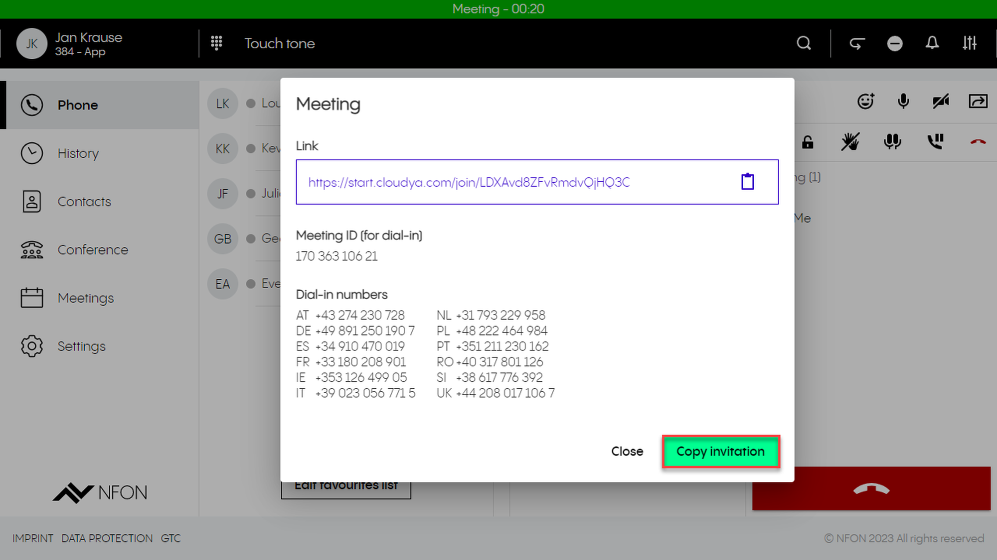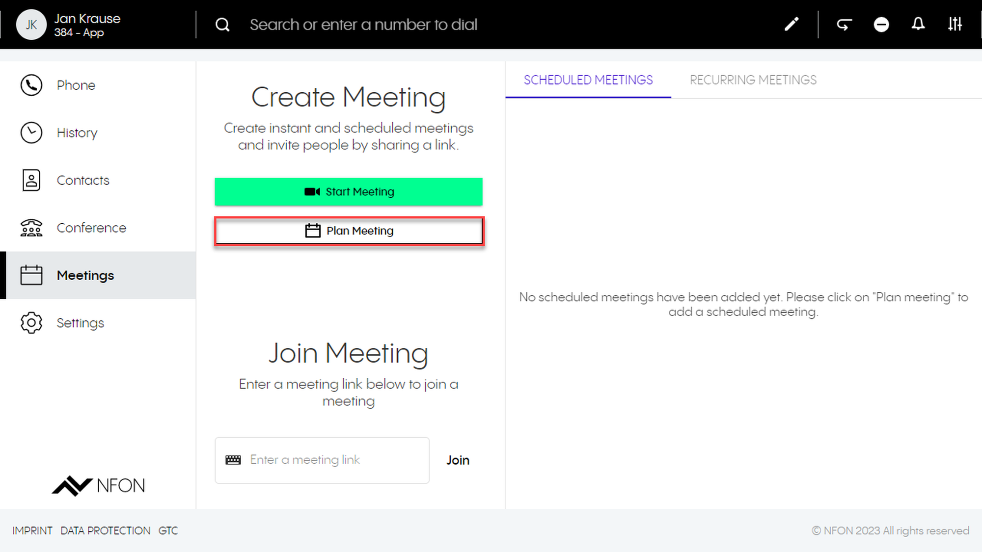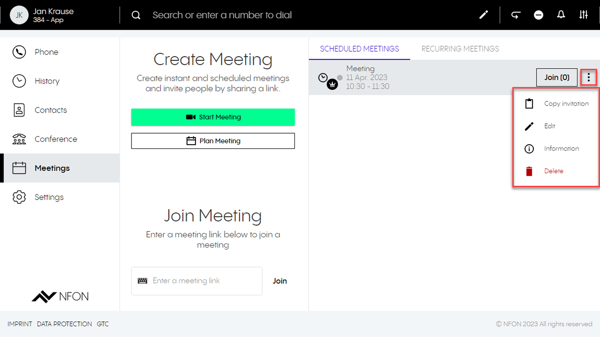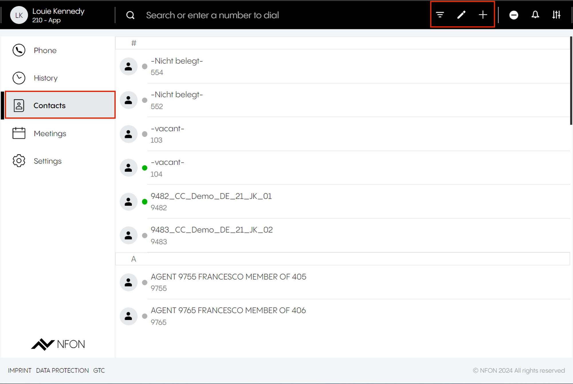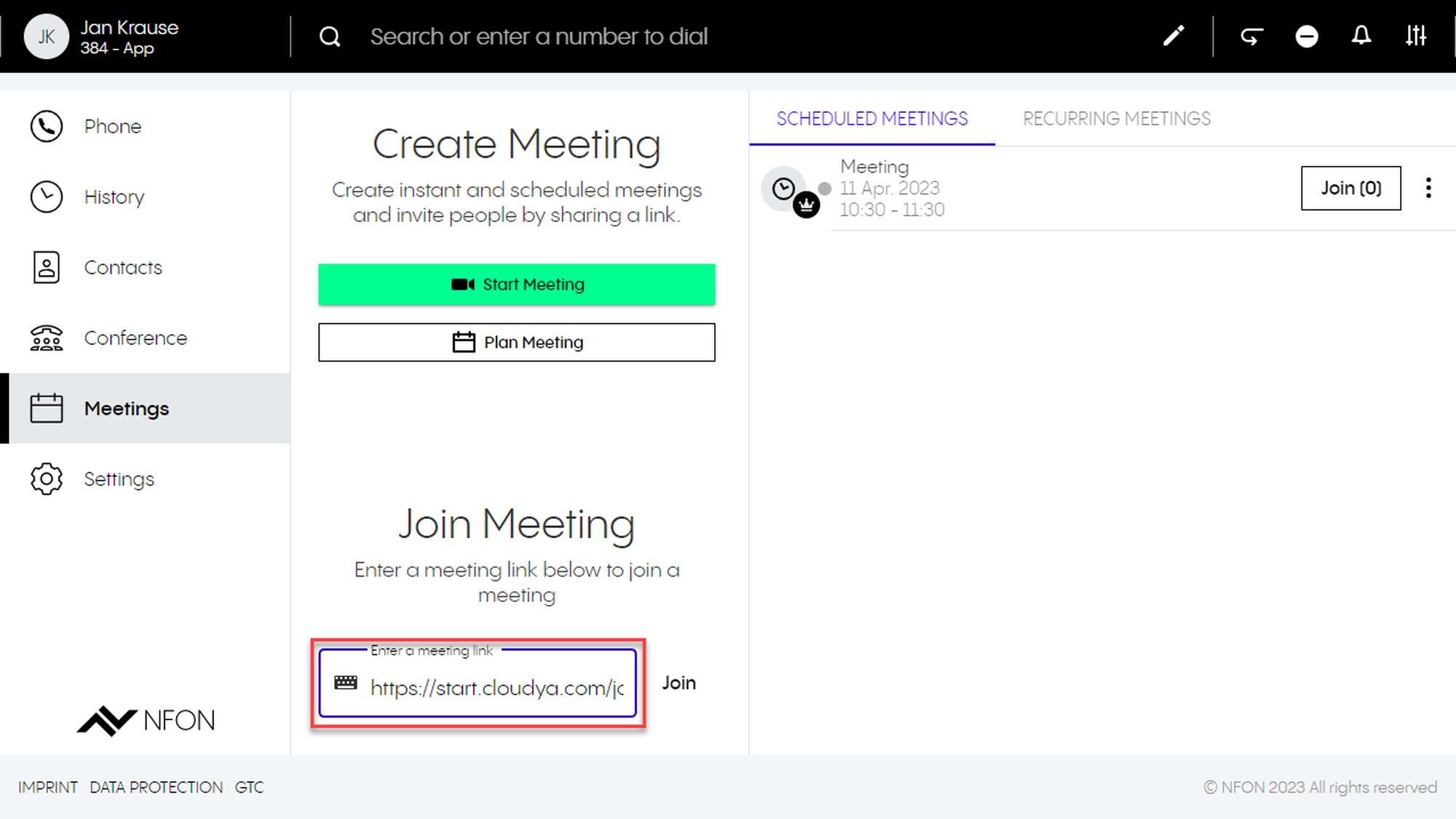 In this section, you can see your recent events, i.e. incoming, outgoing and missed calls, conferences and meetings that you have attended, as well as access your voicemails.