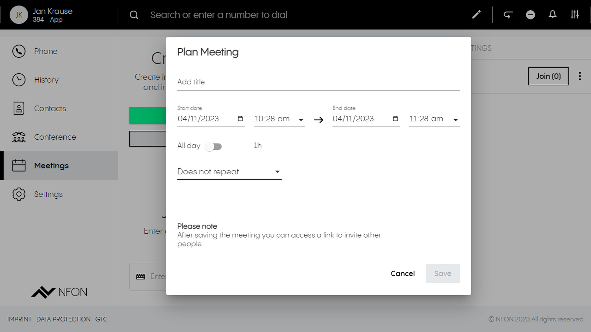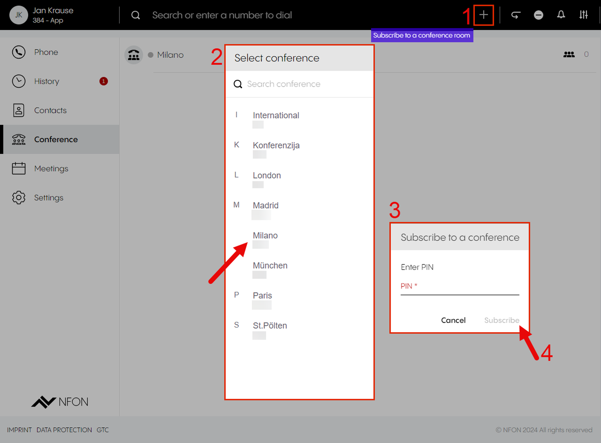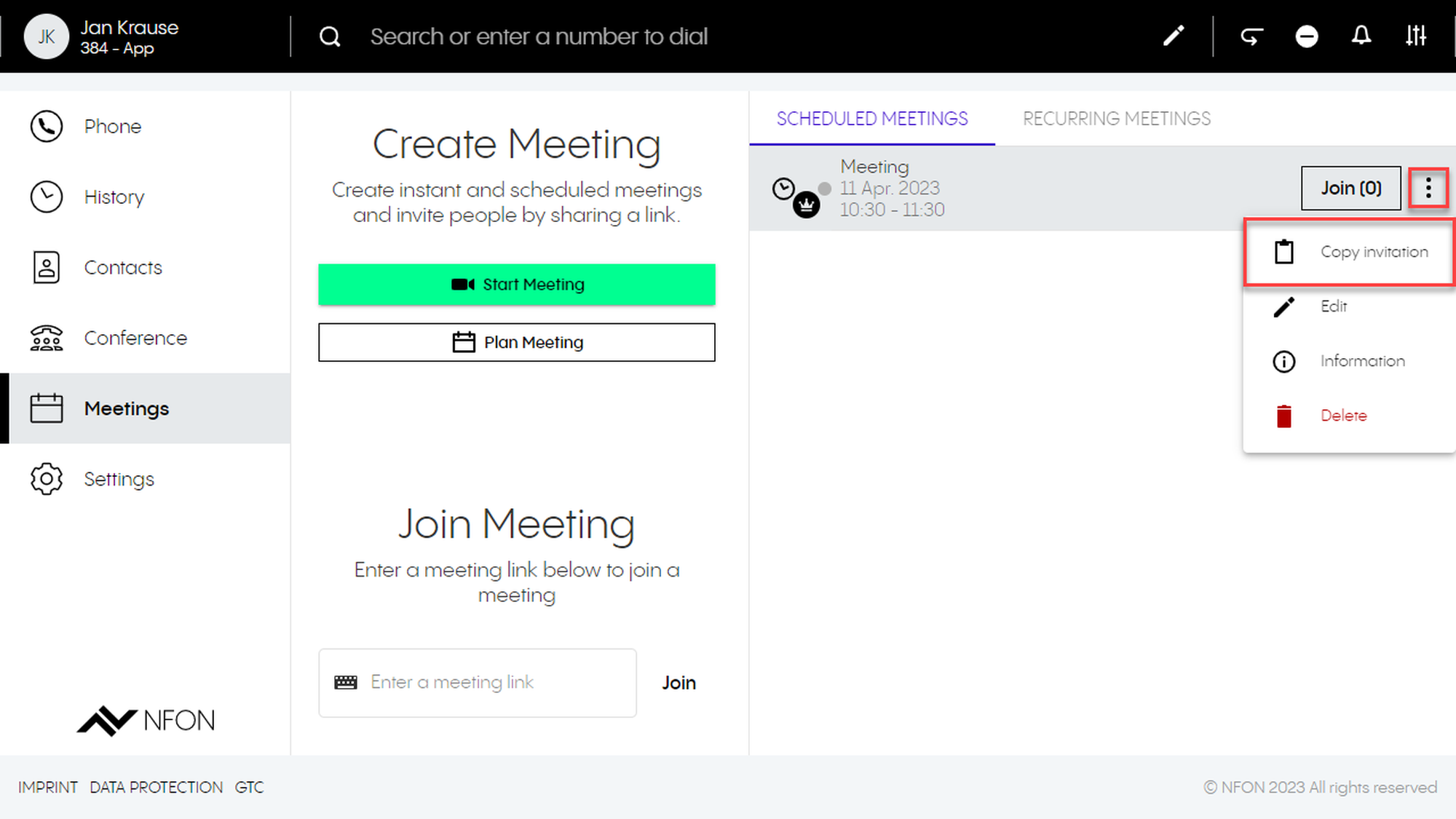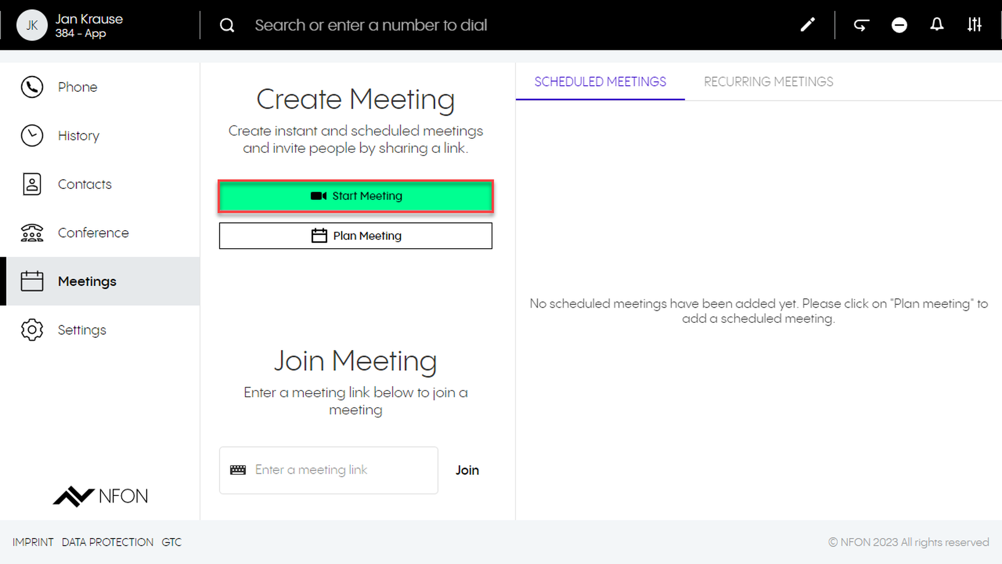 In this section, you can see your recent events, i.e. incoming, outgoing and missed calls, conferences and meetings that you have attended, as well as access your voicemails.