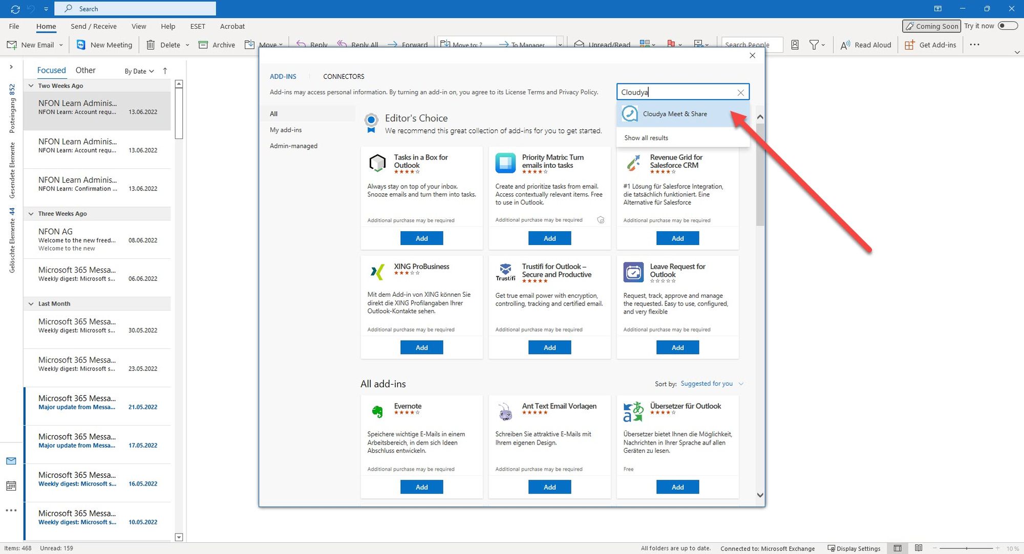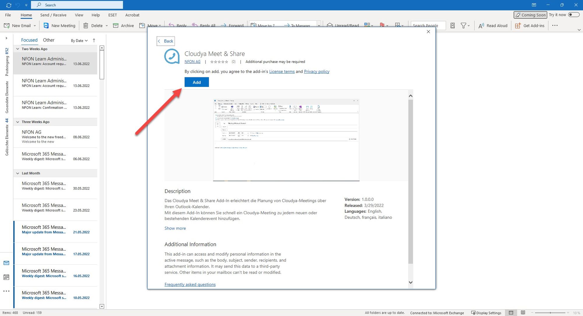 Installing the 1&1 Business Phone Meet & Share add-in in the Outlook desktop app