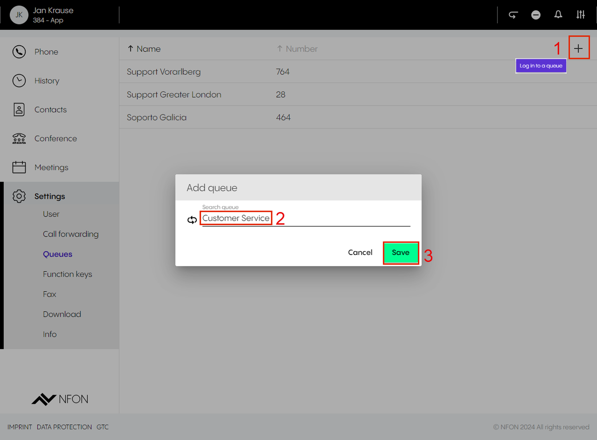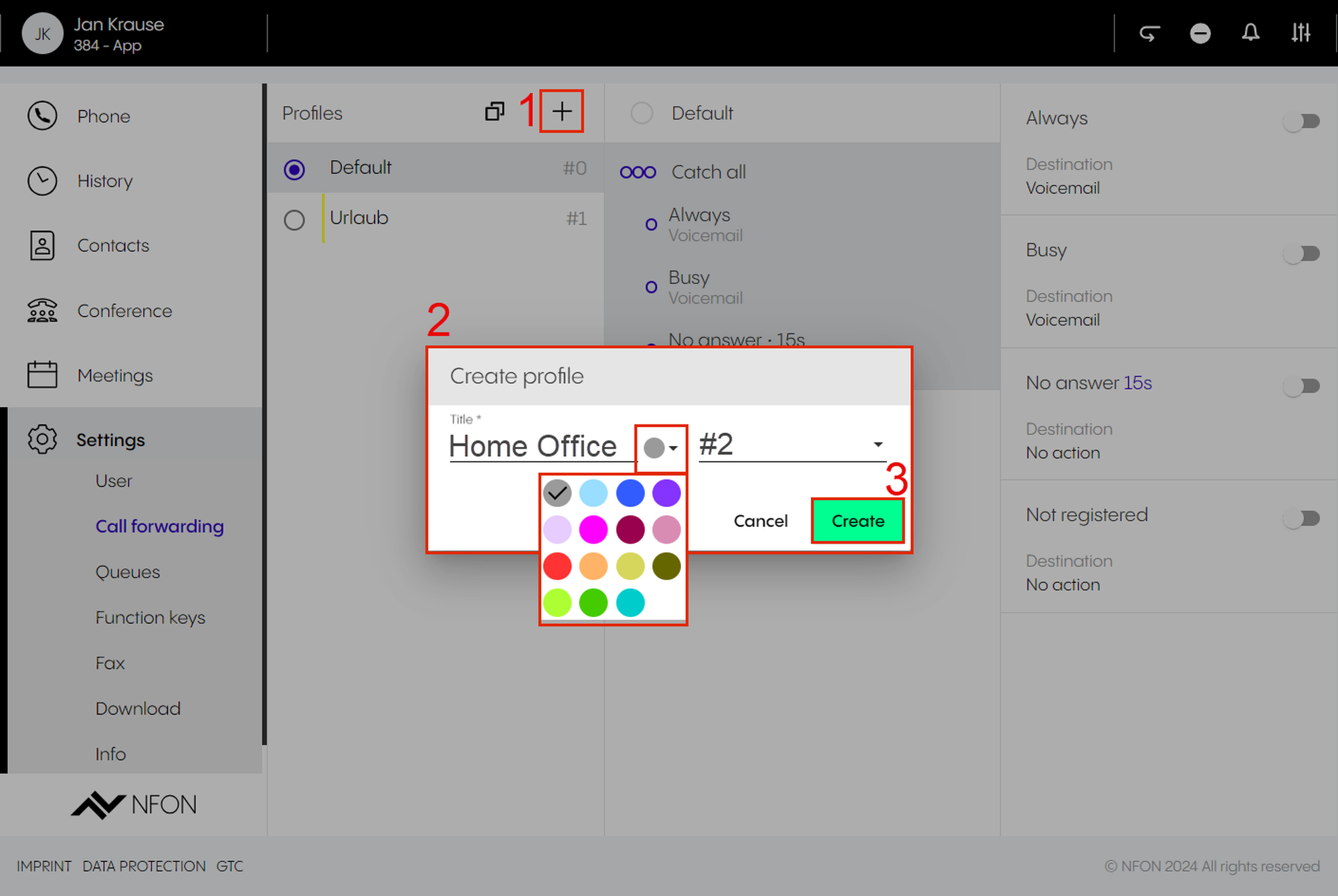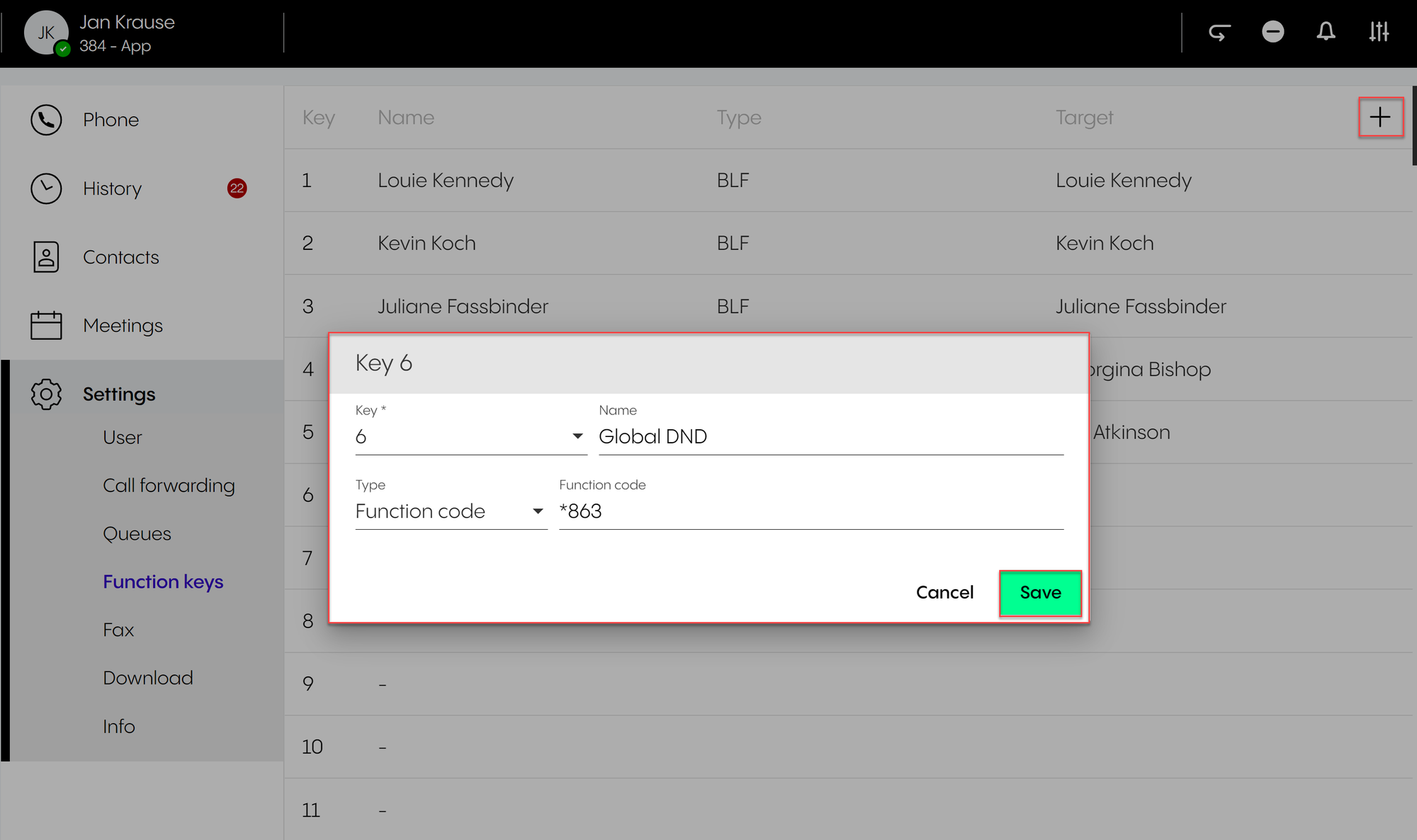 As soon as you have created the user in the Admin portal and have an extension number for this user, you can create the user in the User Management Application. The extension number from the Admin portal needs to be connected to the user in the User Management Application.