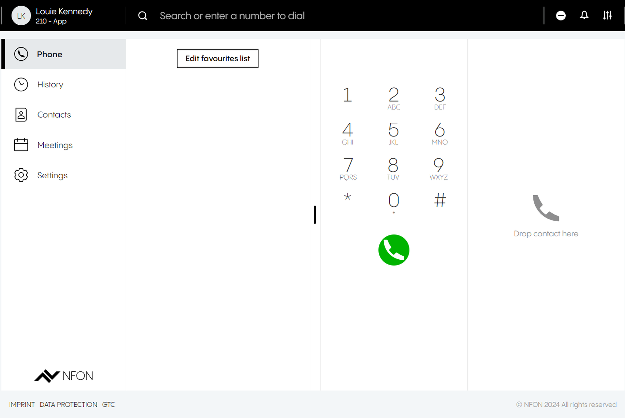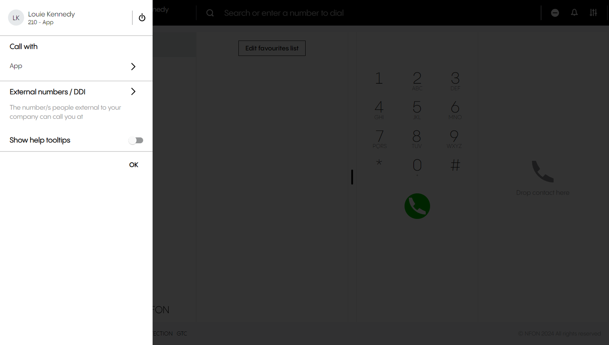 You can make calls using the app, your extension (e.g. your desktop phone) or another device, such as your mobile phone. This feature is called Click to Dial (C2D). Just select the device you want to make a call with, and all your calls will go through that device.