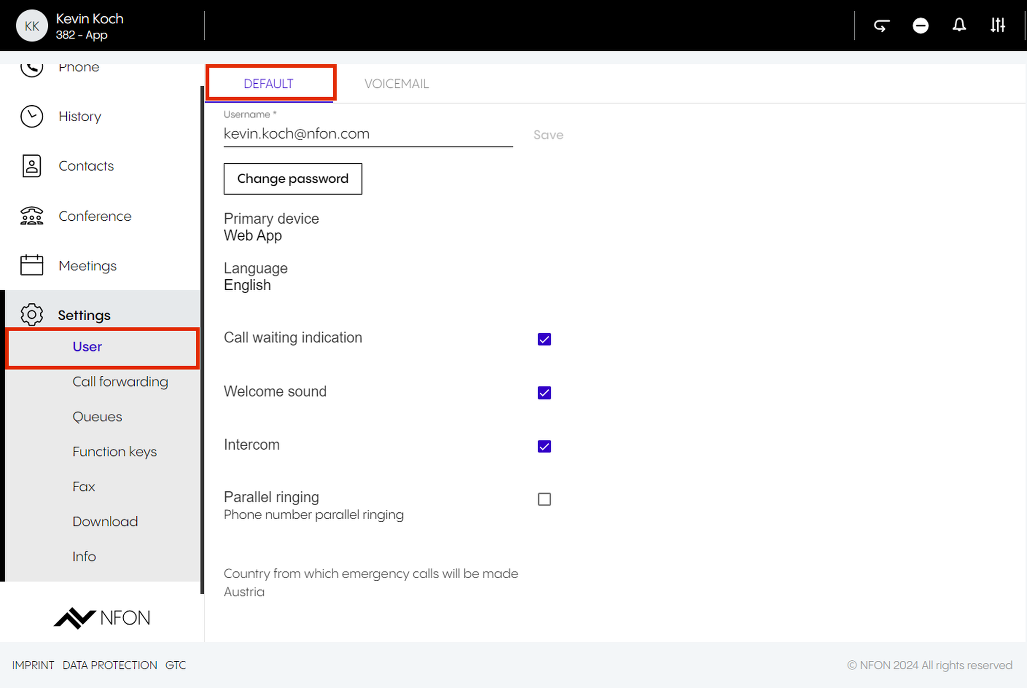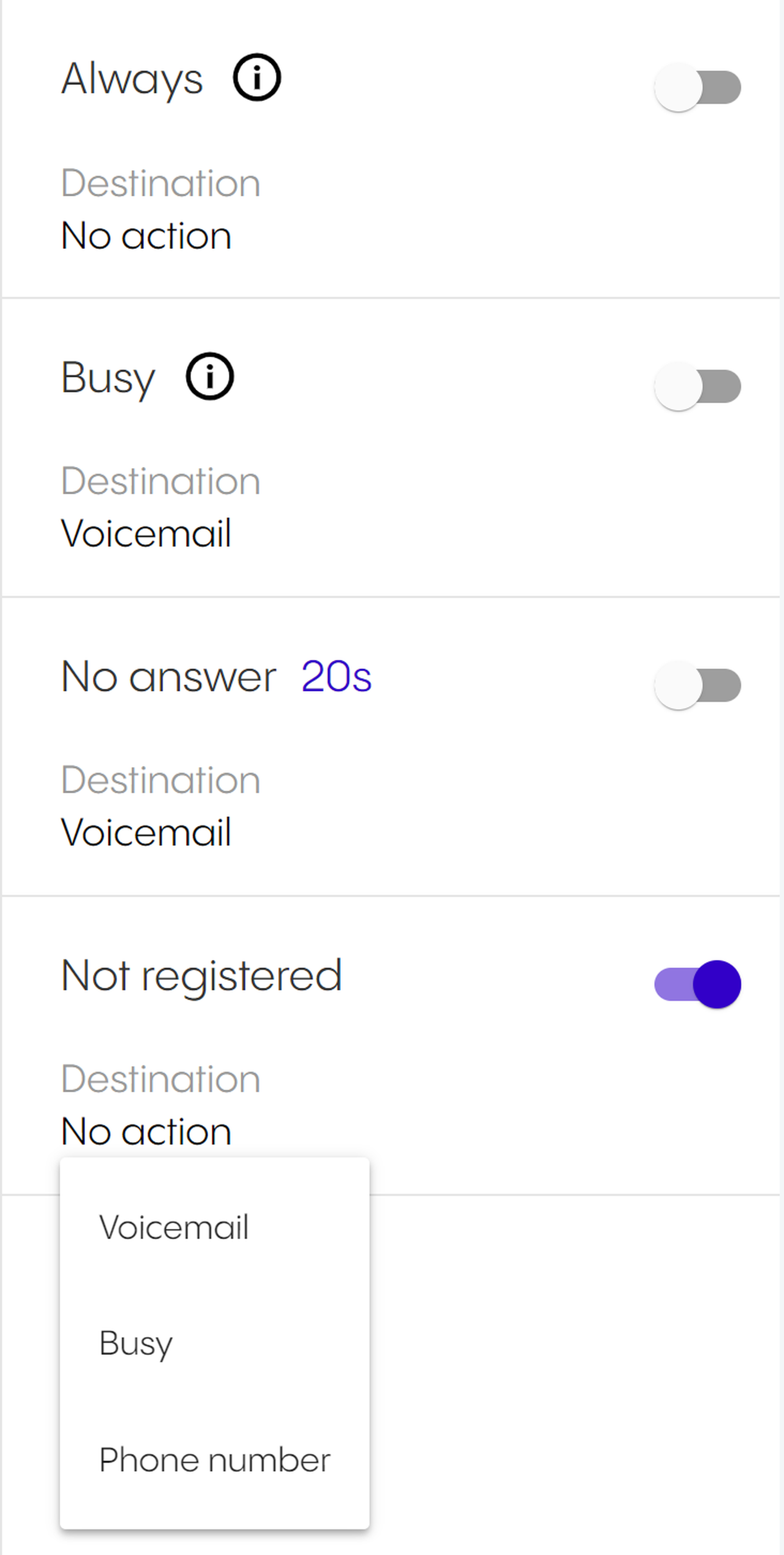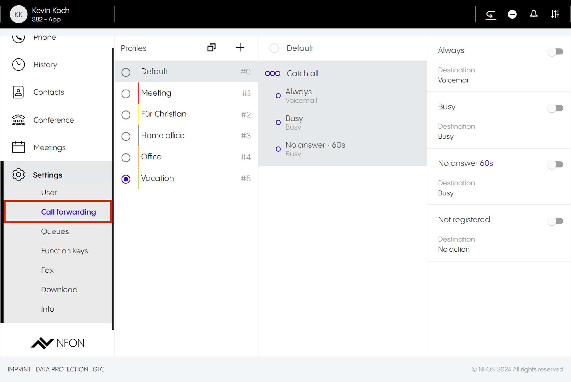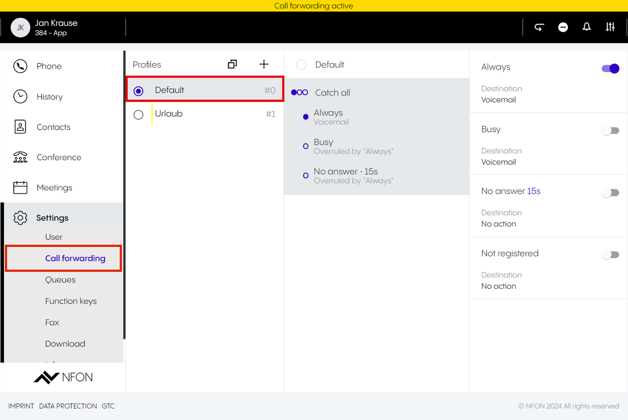 Per default, the app is set as your primary device - the target you will call with. This means, once you have an incoming call, your app will ring. In case you want to change this, select a different device.