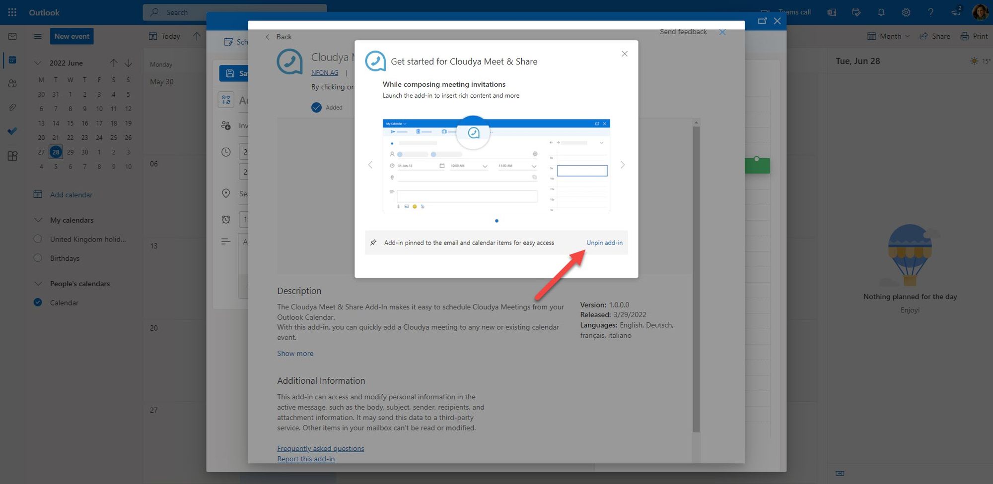 Installing the 1&1 Business Phone Meet & Share add-in in the Outlook web app