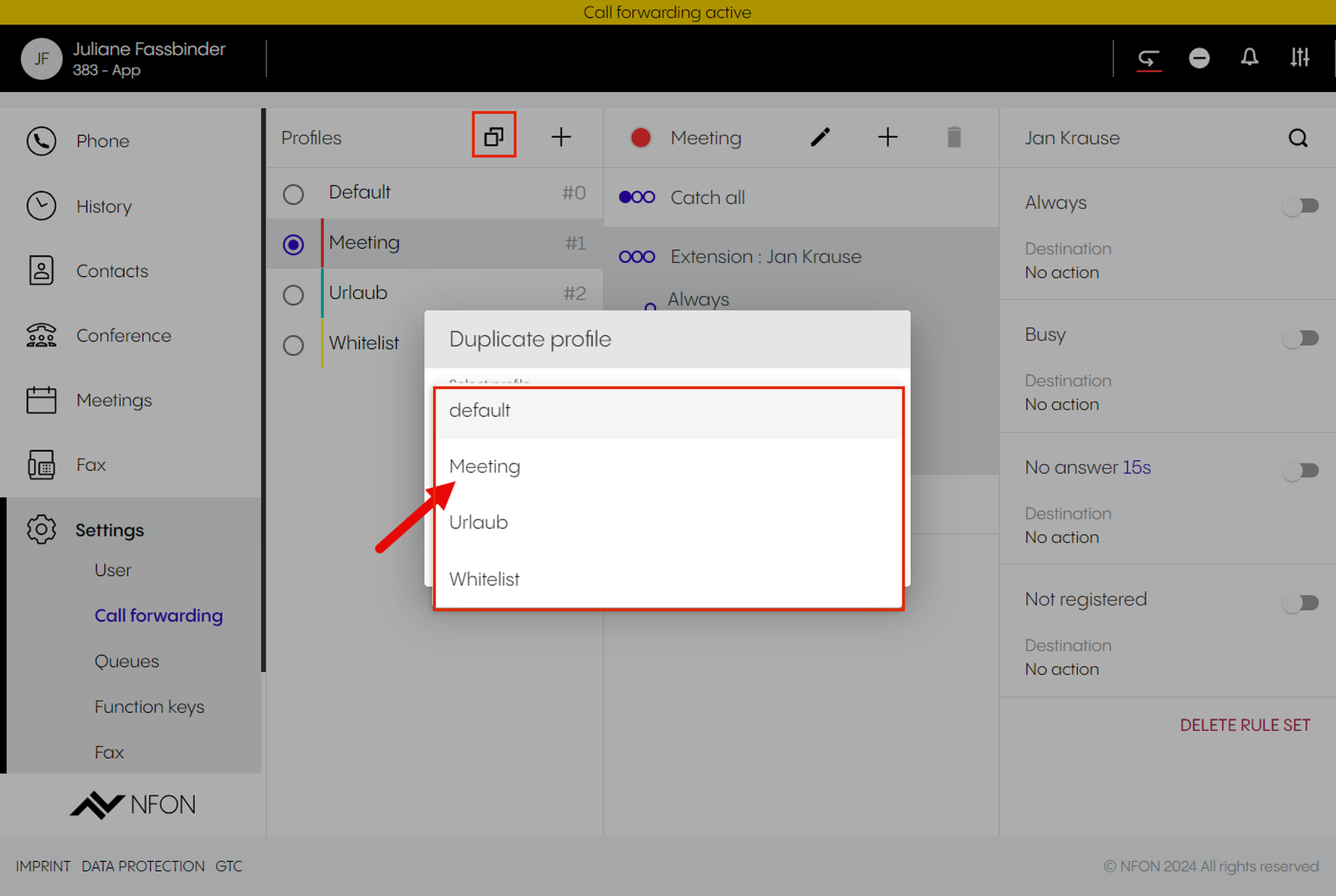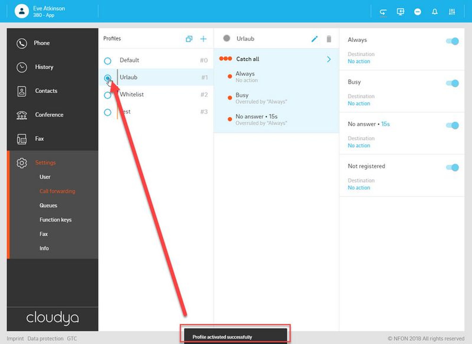 | Call Forwarding: Select the call forwarding profile you wish to activate | |