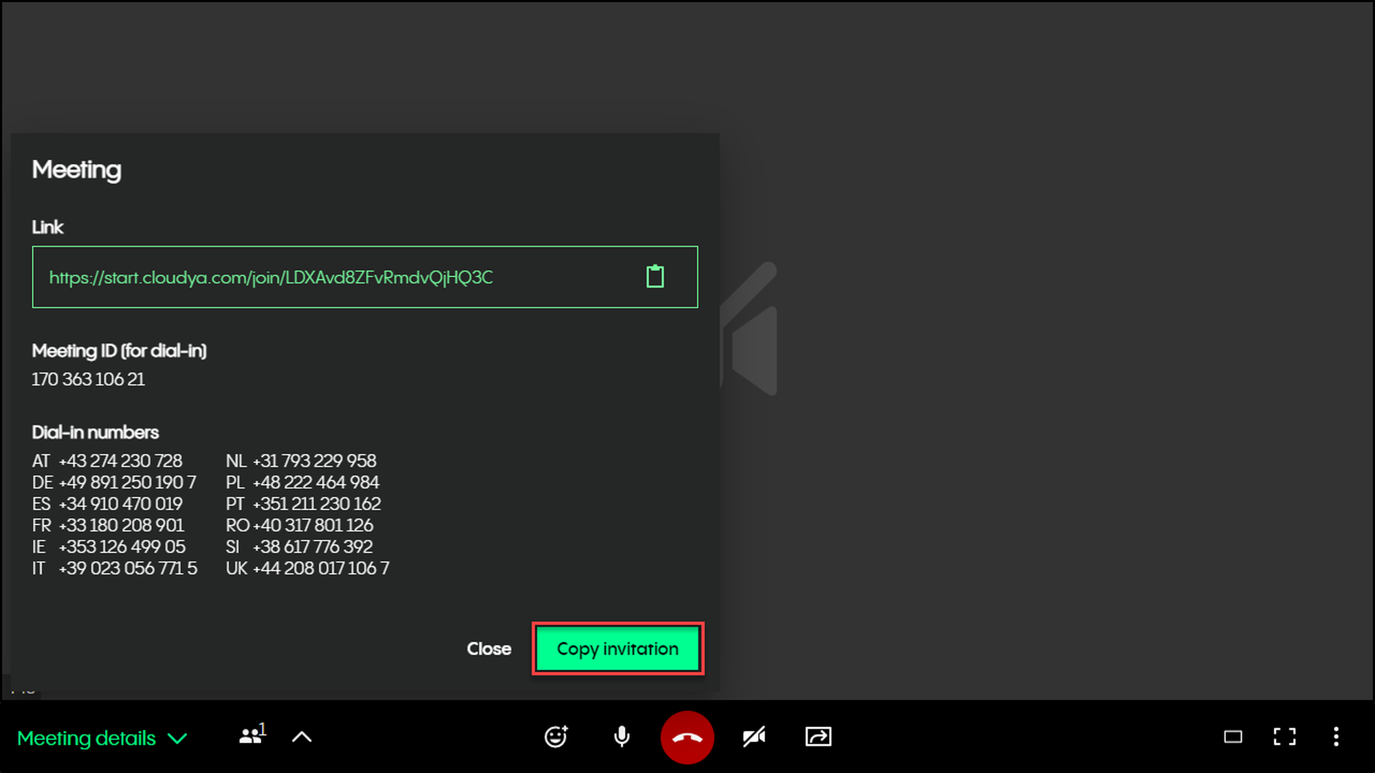 To do so, simply click on the Outlook add-in button to create a URL for your Cloudya meeting. This URL will automatically be added to your appointment’s description.