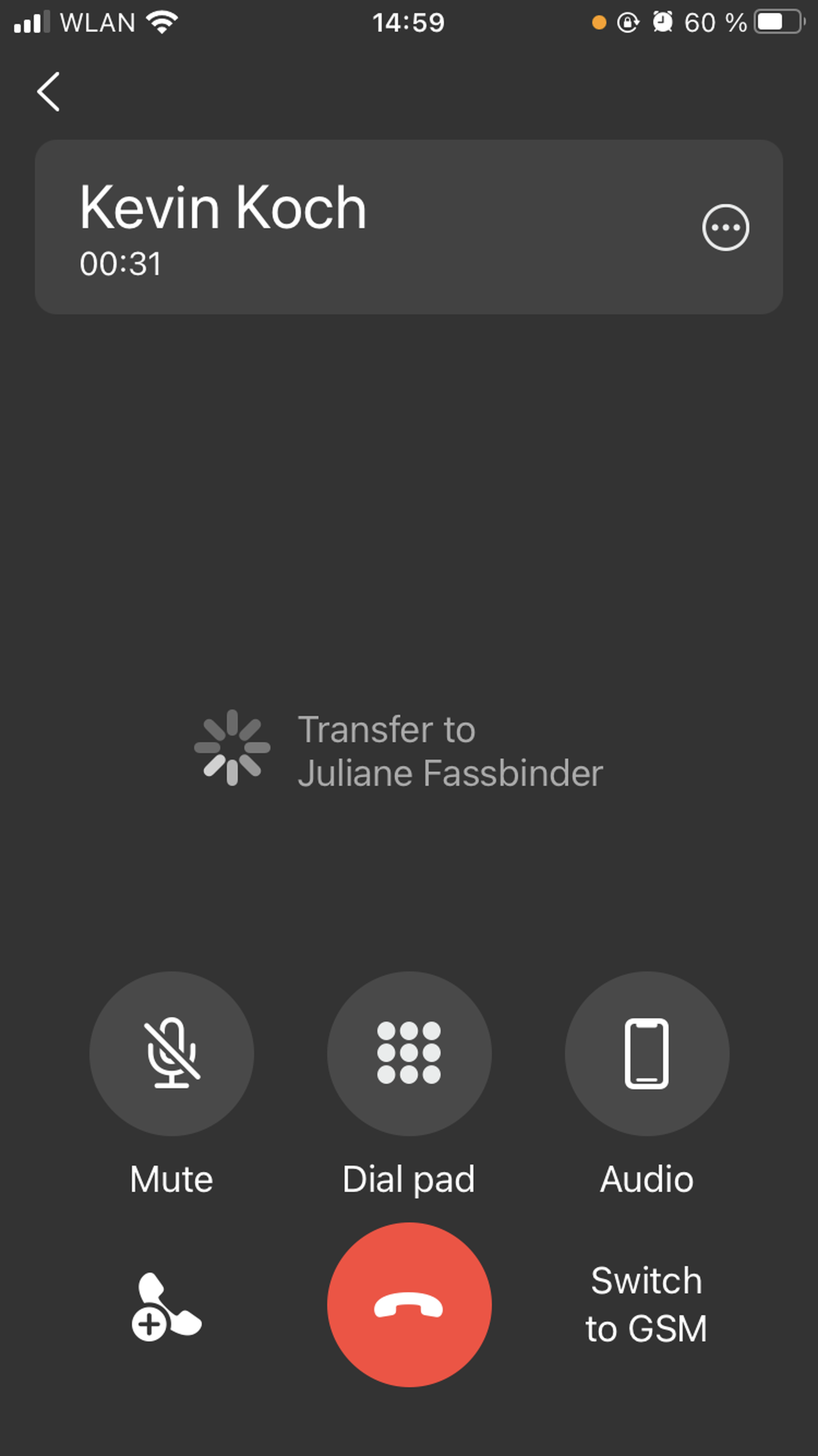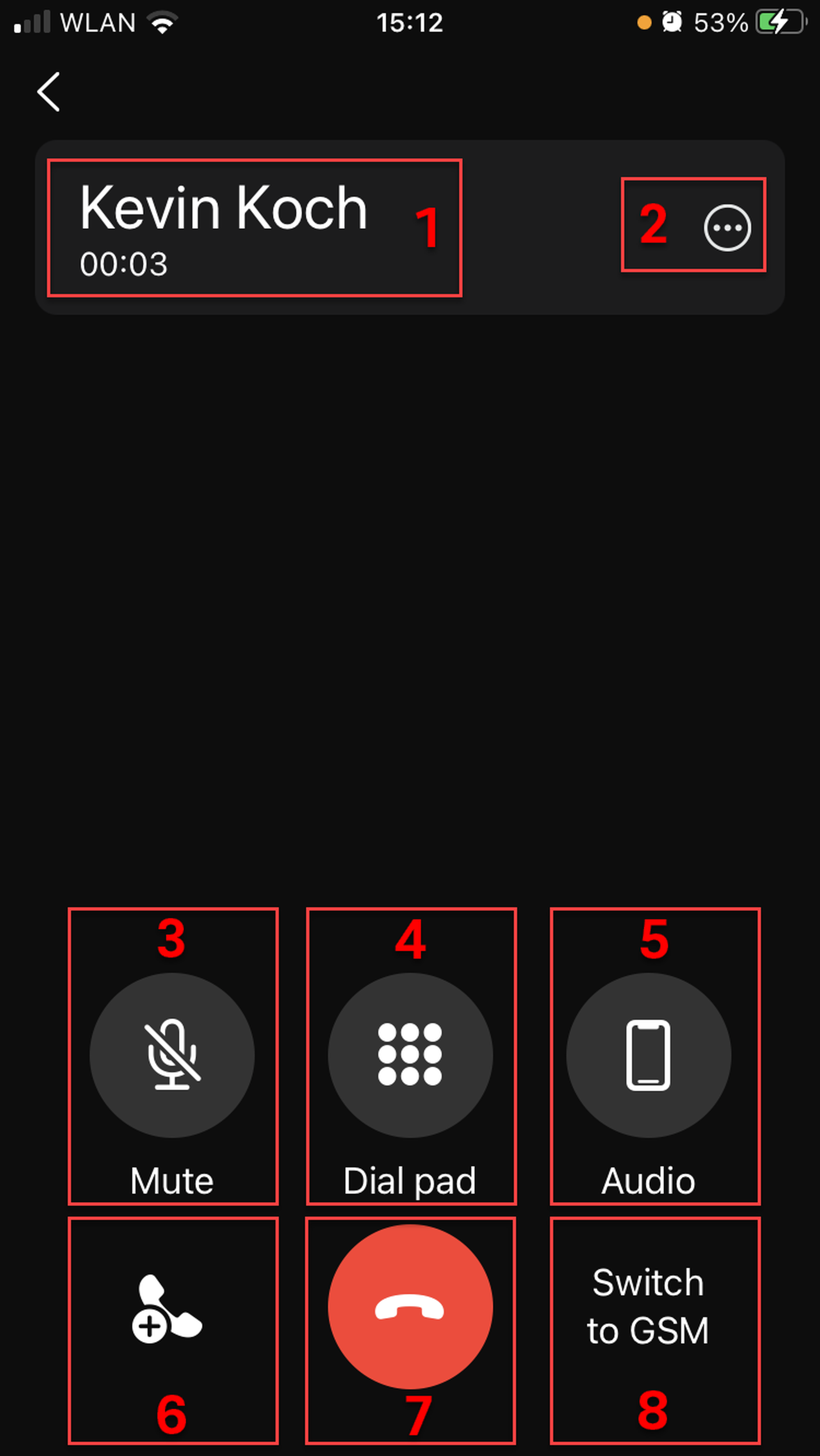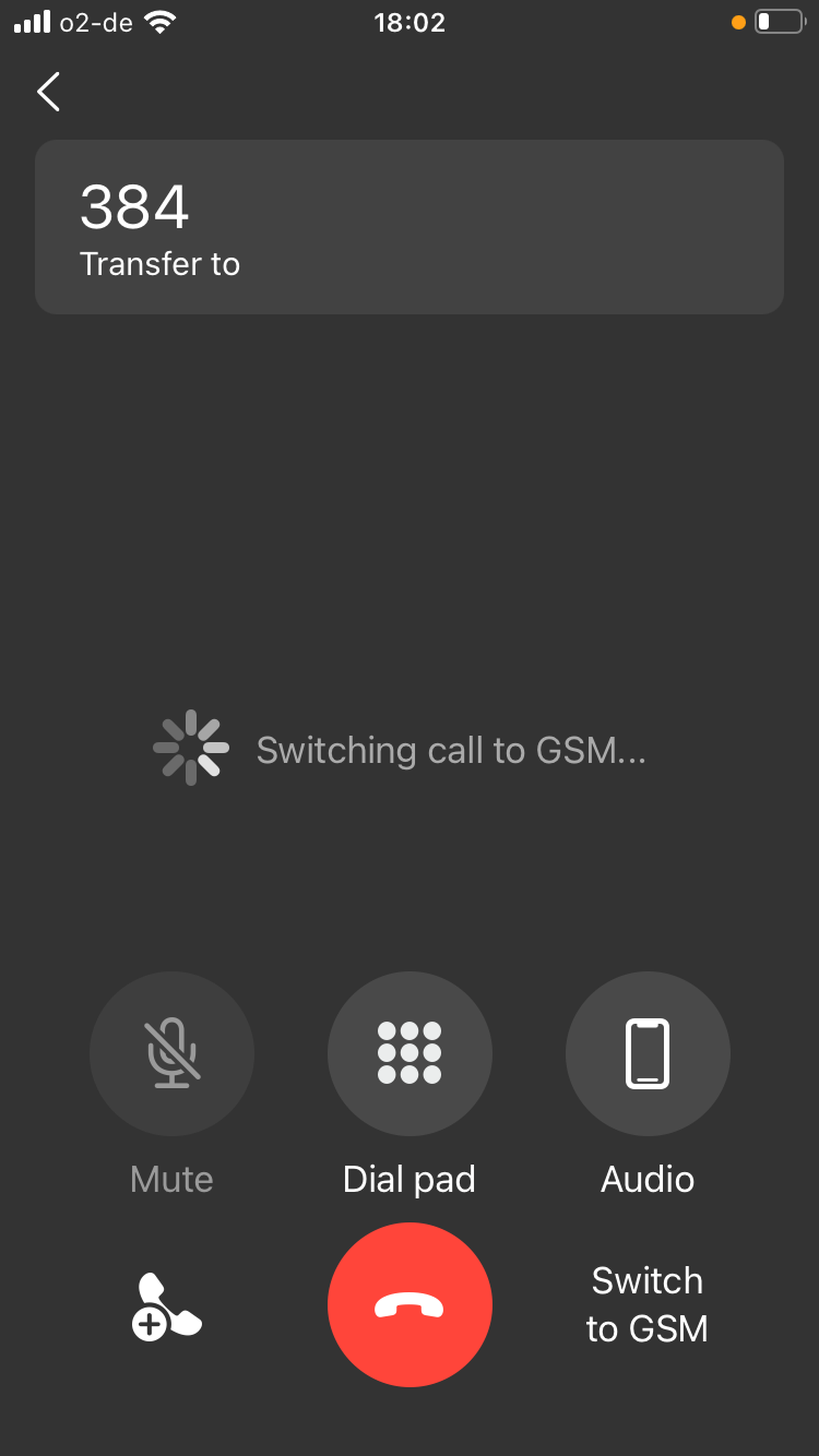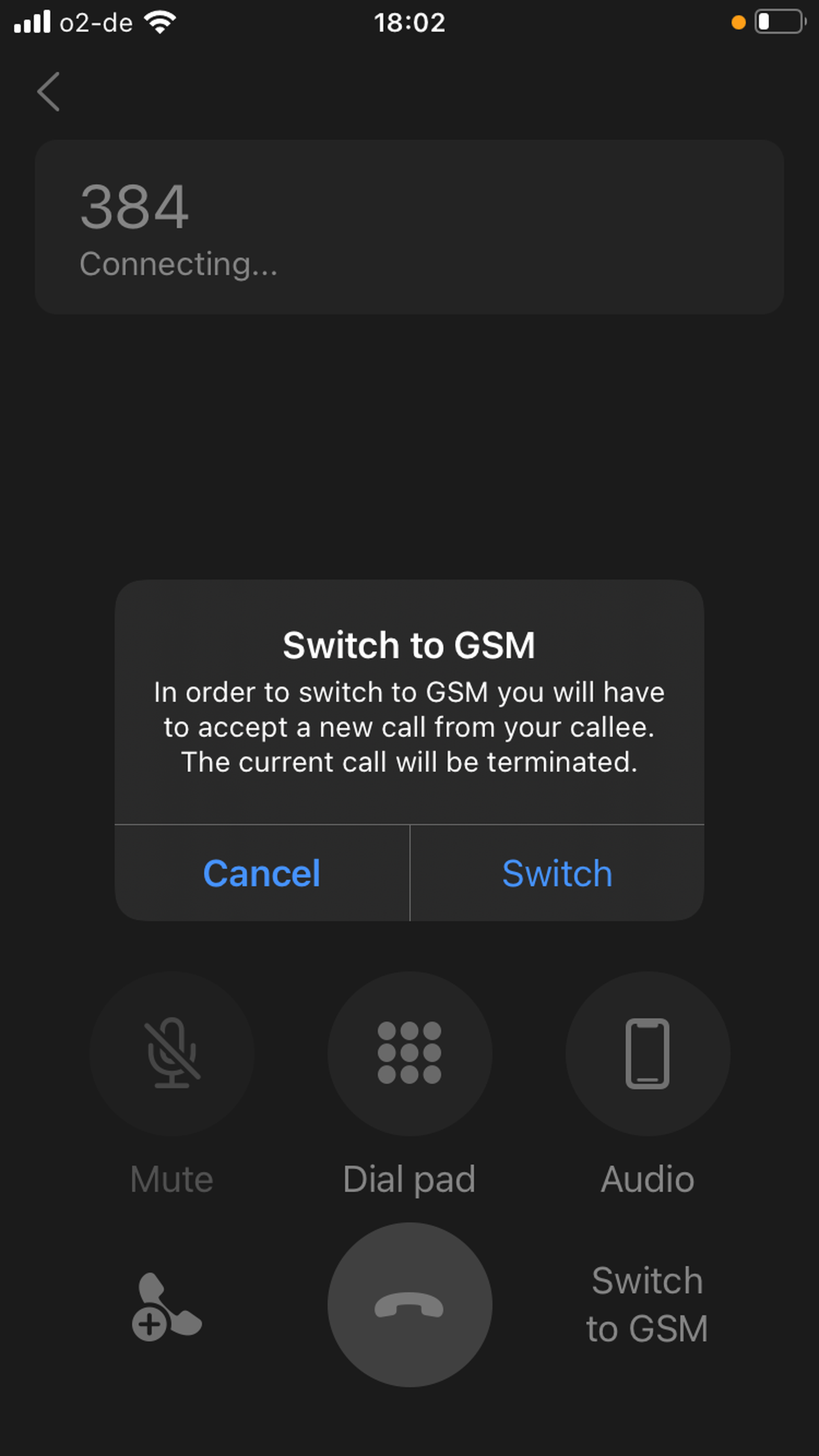 In a 1:1 audio call, you also have an option to switch to a video call.