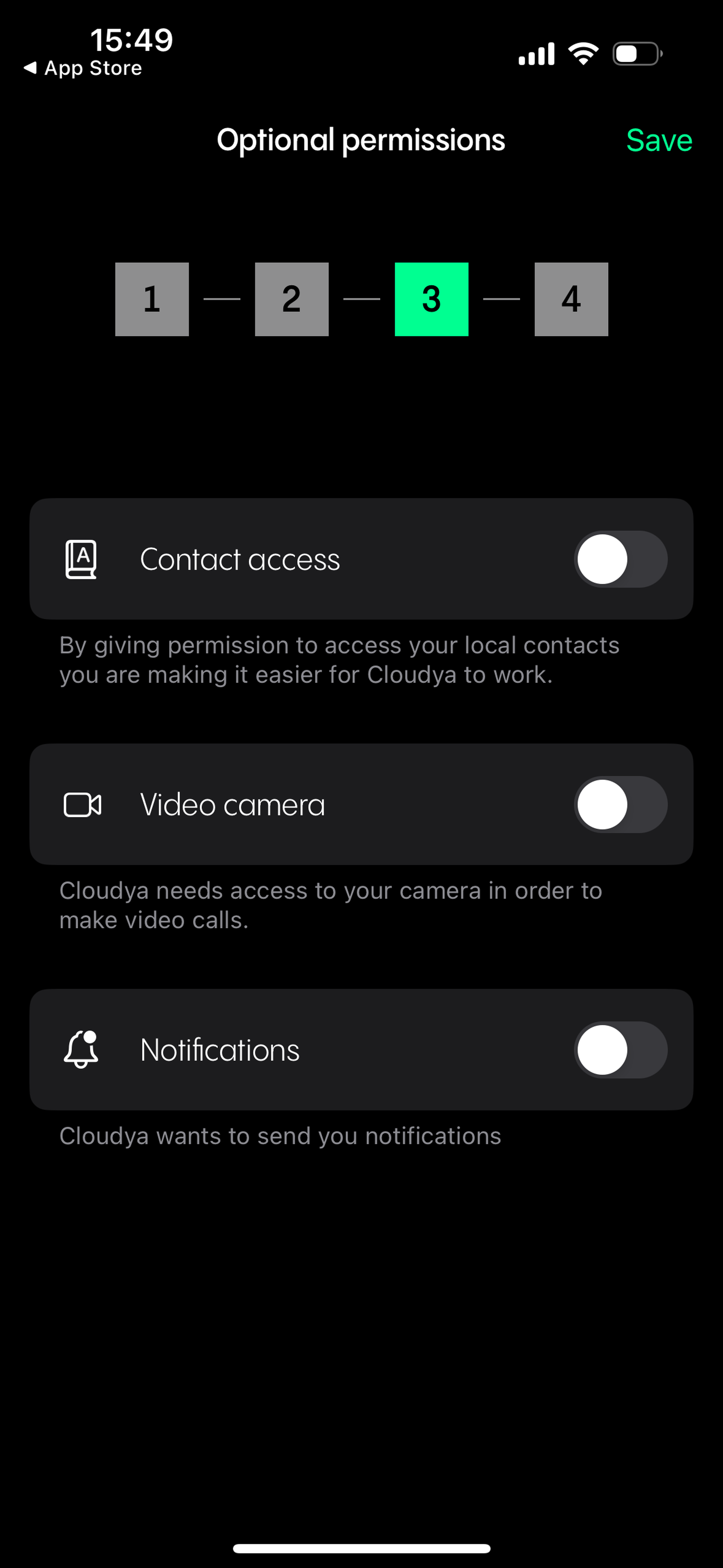 These settings can be changed later on. Please be aware that without the proper permissions the app might not work as intended.