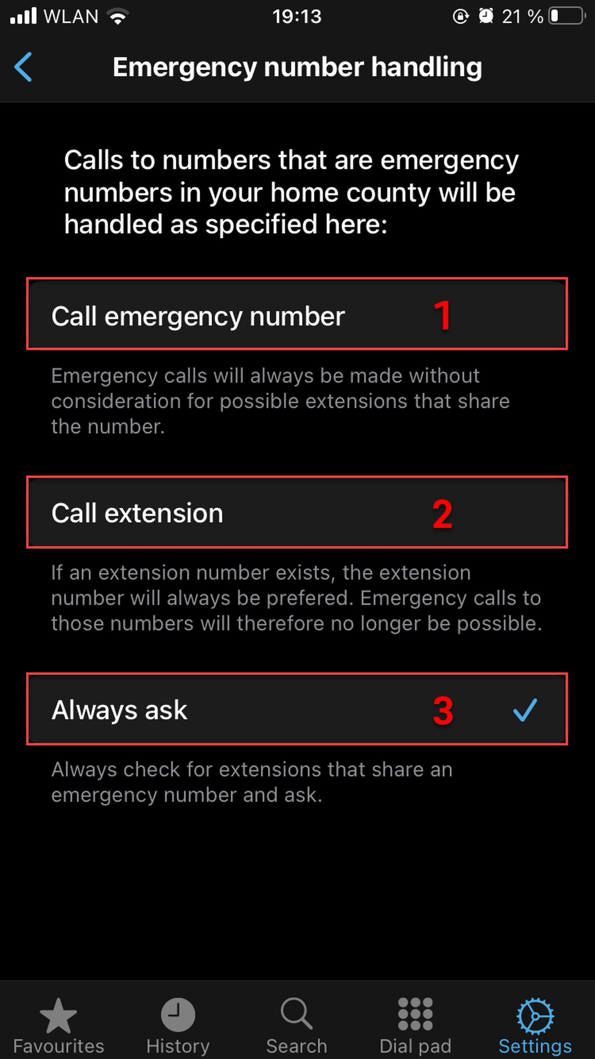 If an extension number coincides with the emergency number, you have select what you want to call.