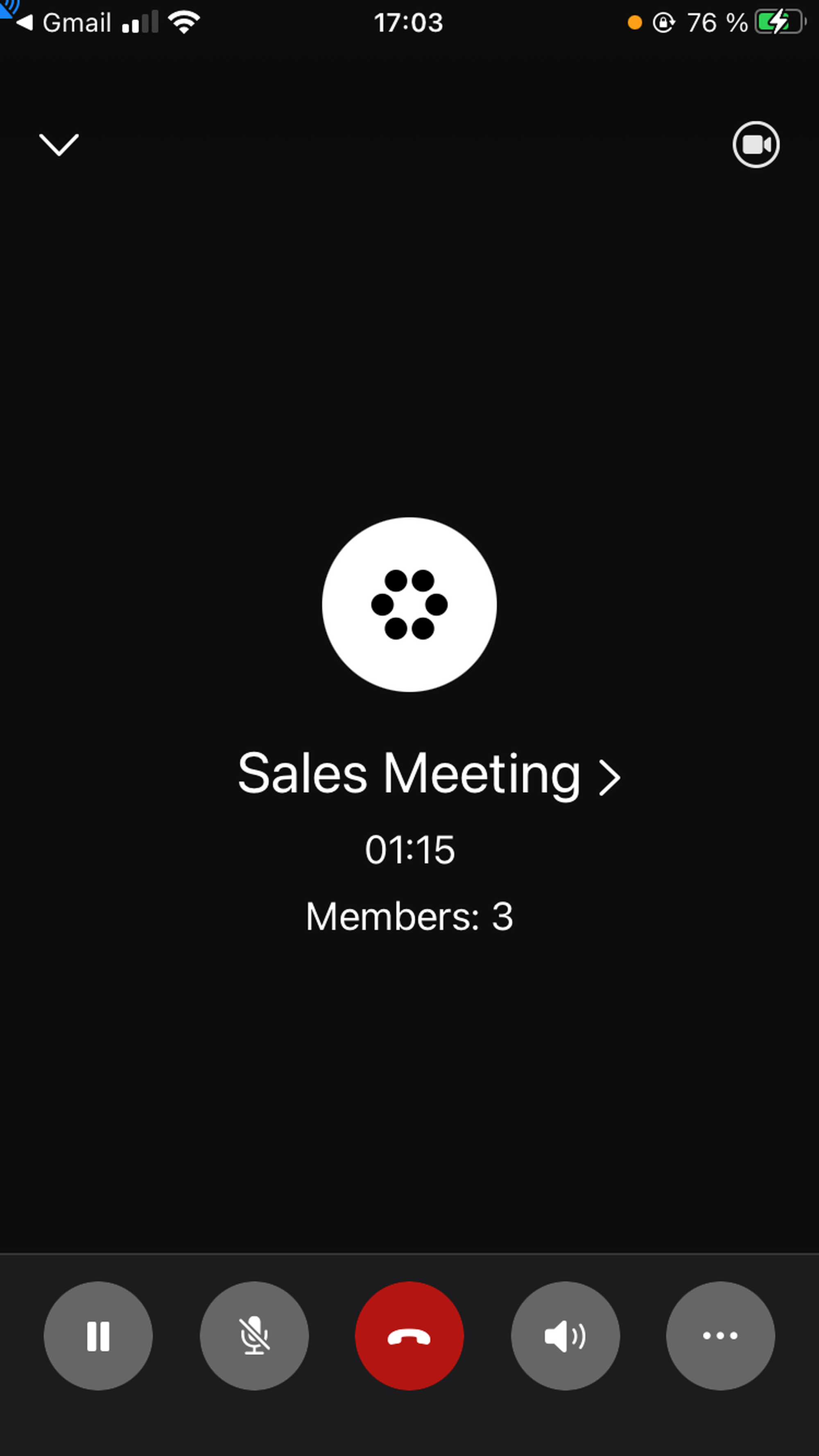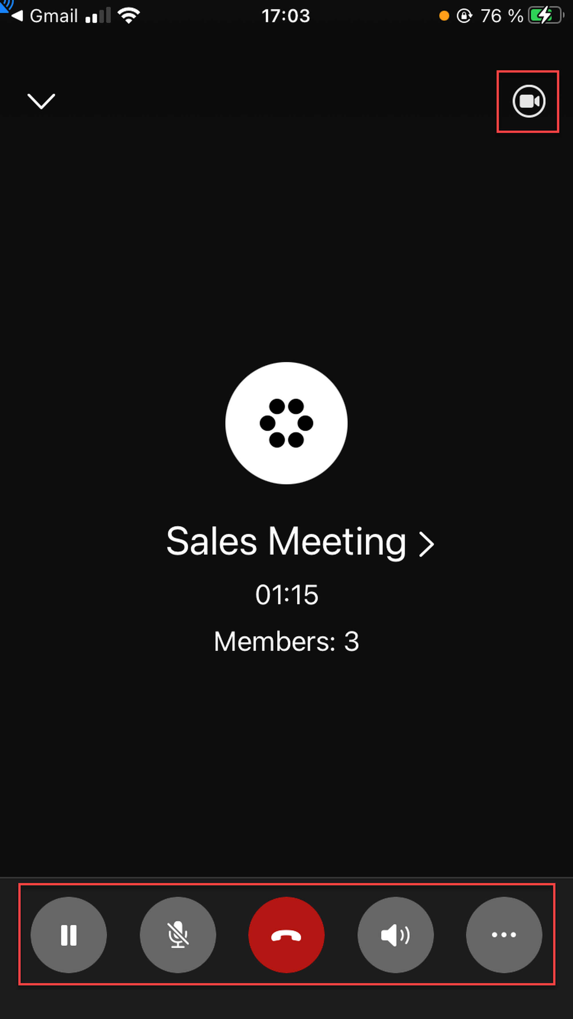 Put the conference on hold (cameras are switched off automatically and the conference goes to the audio mode; press unhold to resume the meeting; to switch back to the video mode, tap on the top-right camera and then the camera in the bottom bar)