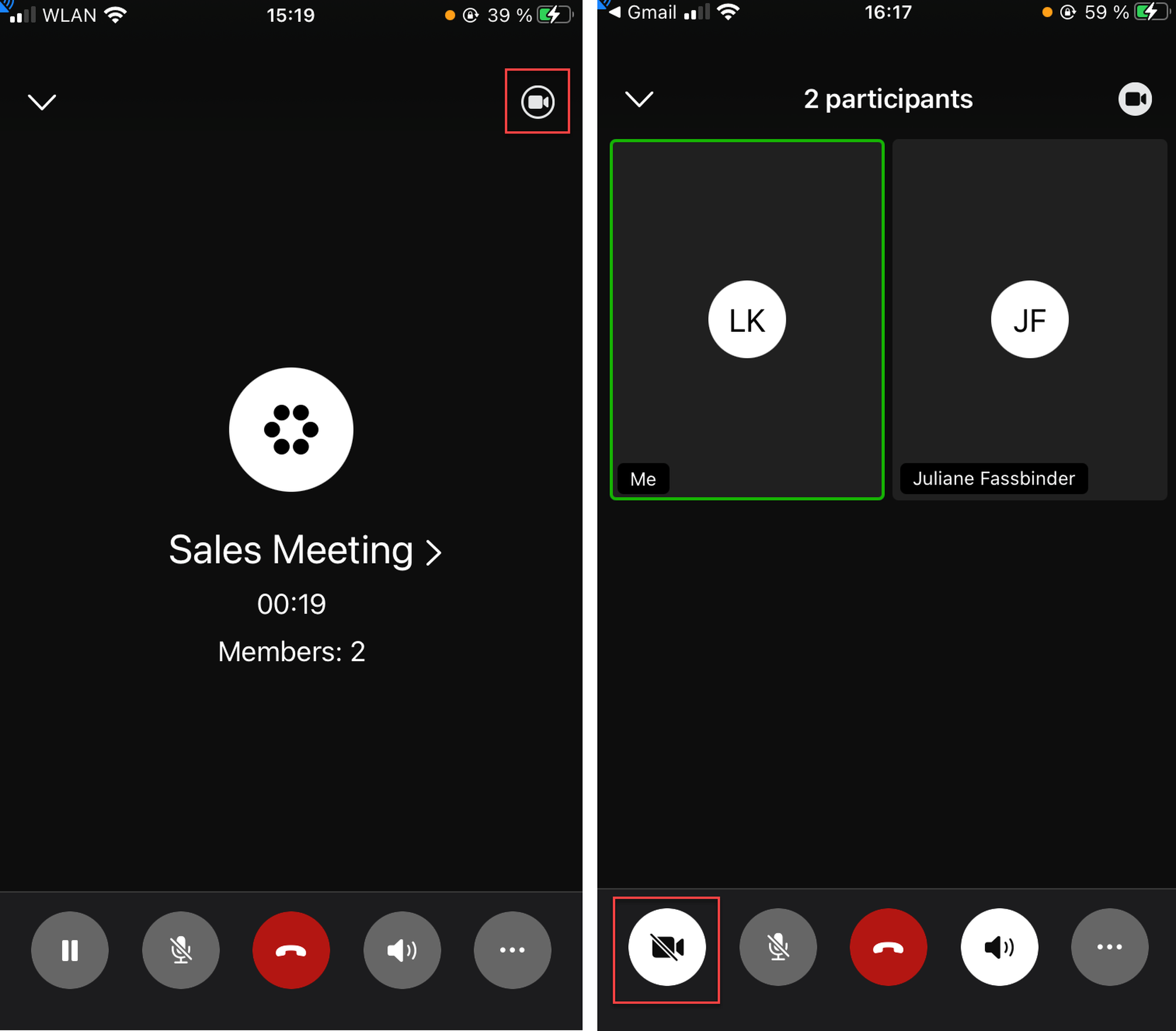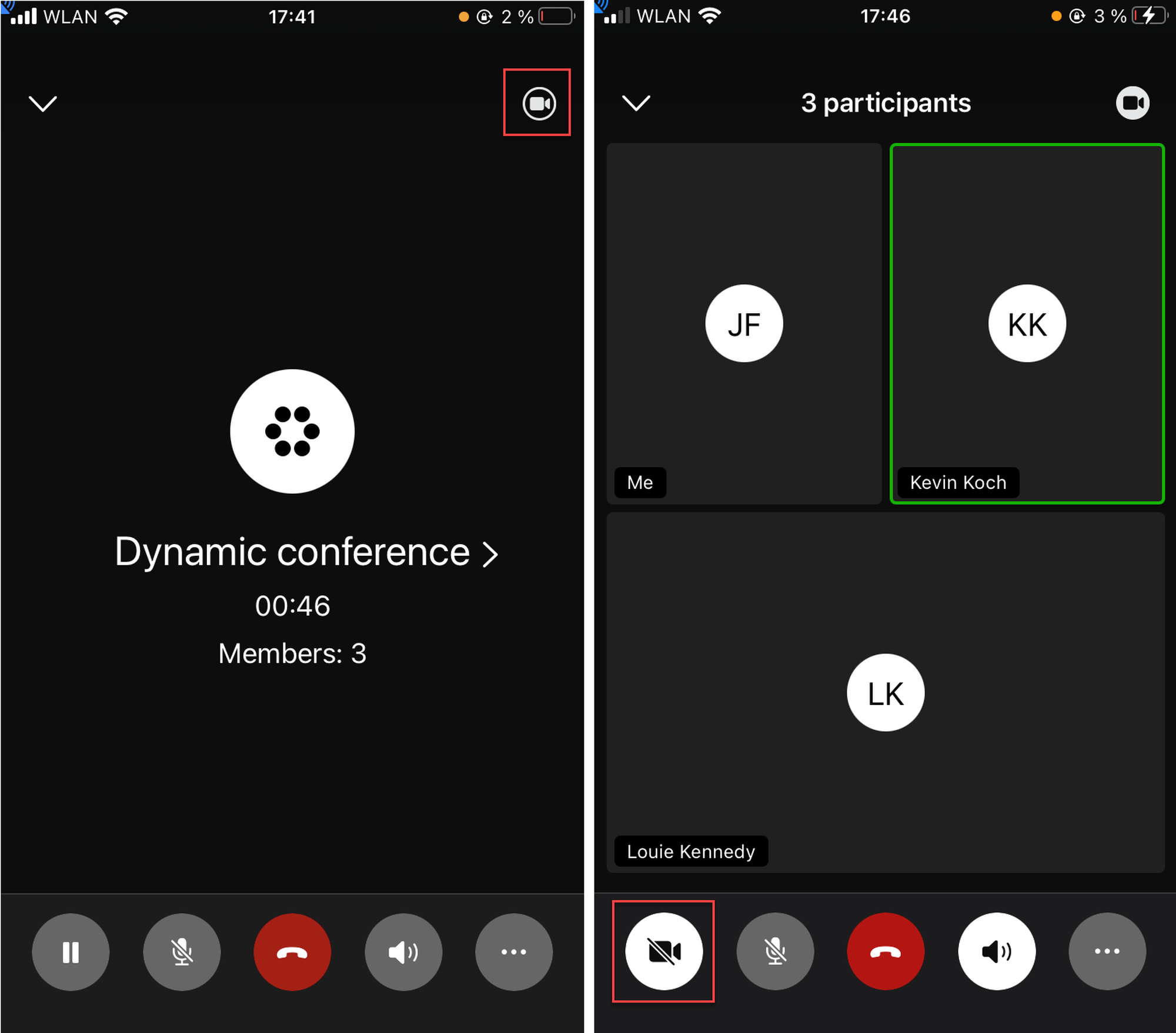 If there are more than 4 participants, swipe to the right or left to see other members of the conference.