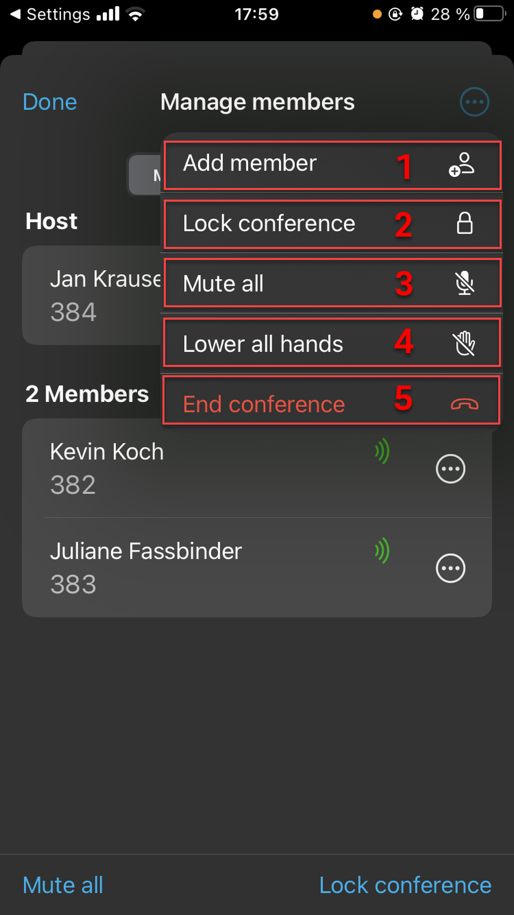 As a Host, you have additional conference options: