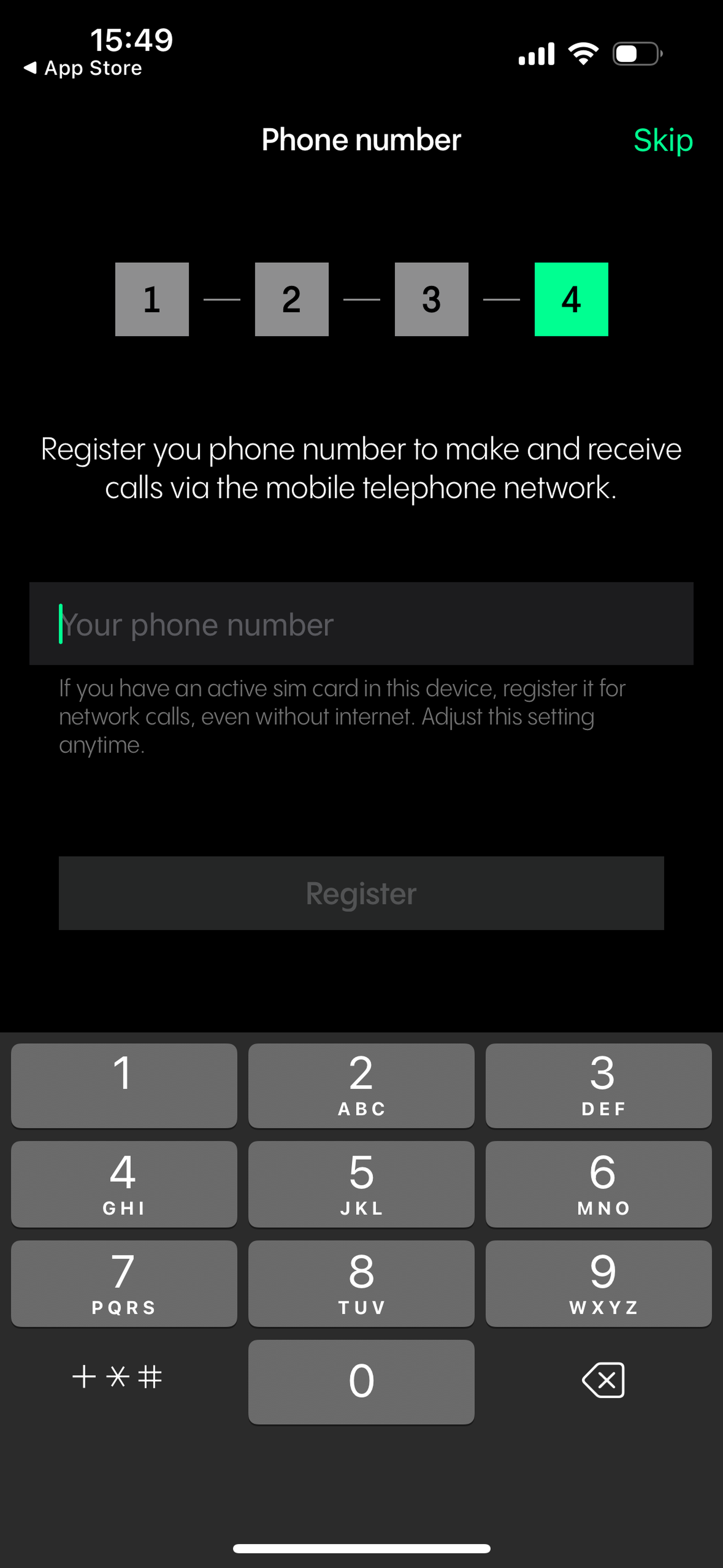 Register your mobile phone number. Please note that it is only possible if your device has a SIM card installed.