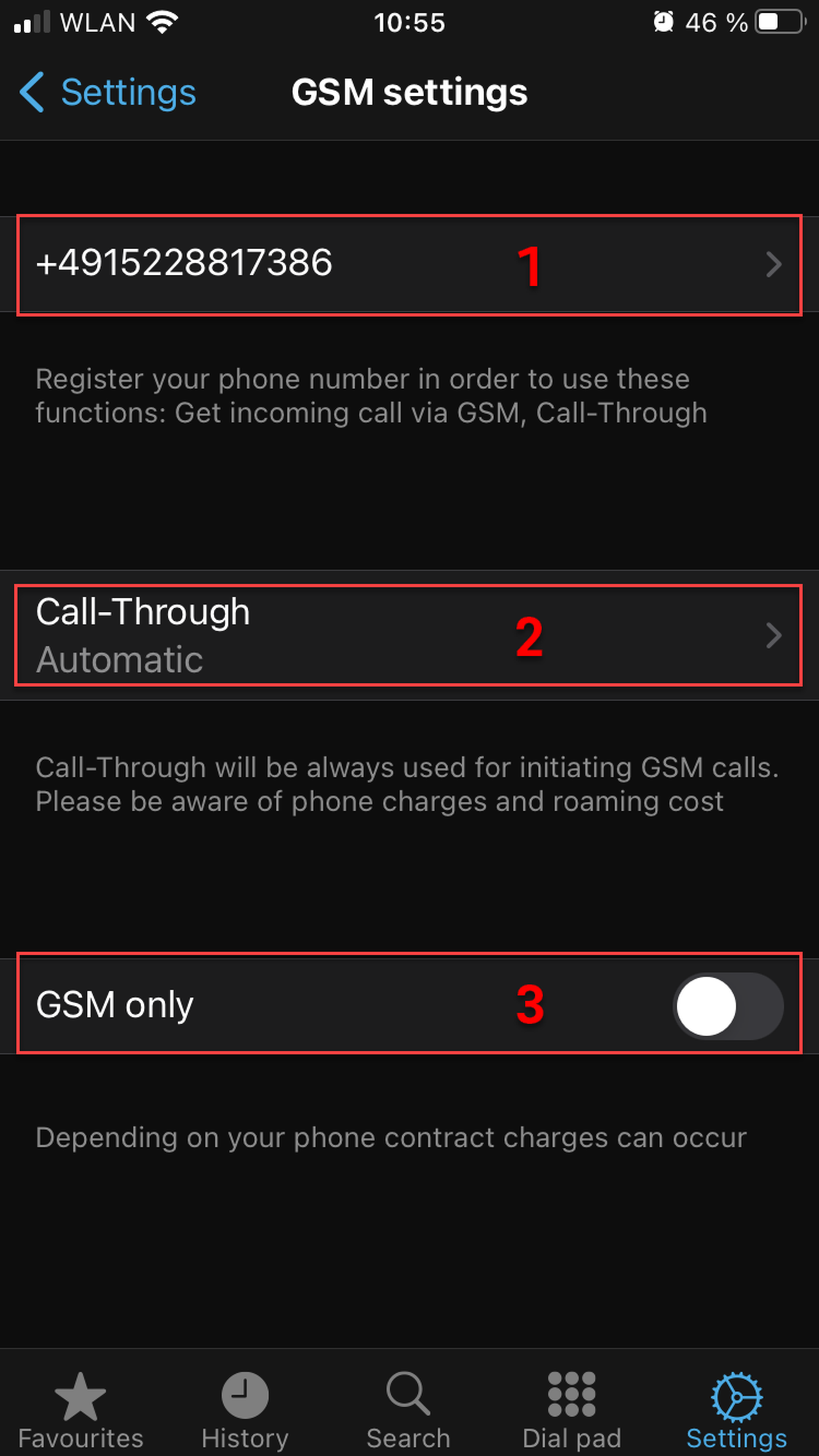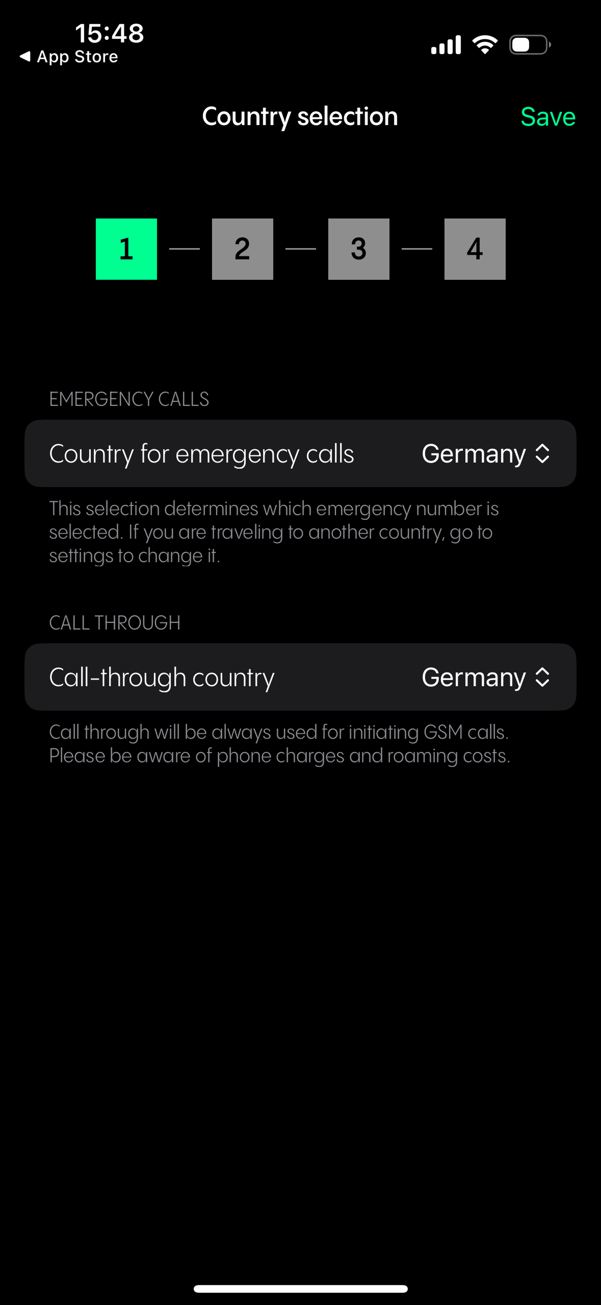Please note that the Automatic default setting for call through is Germany. If you are in another country, make sure to change it to the country you are in.