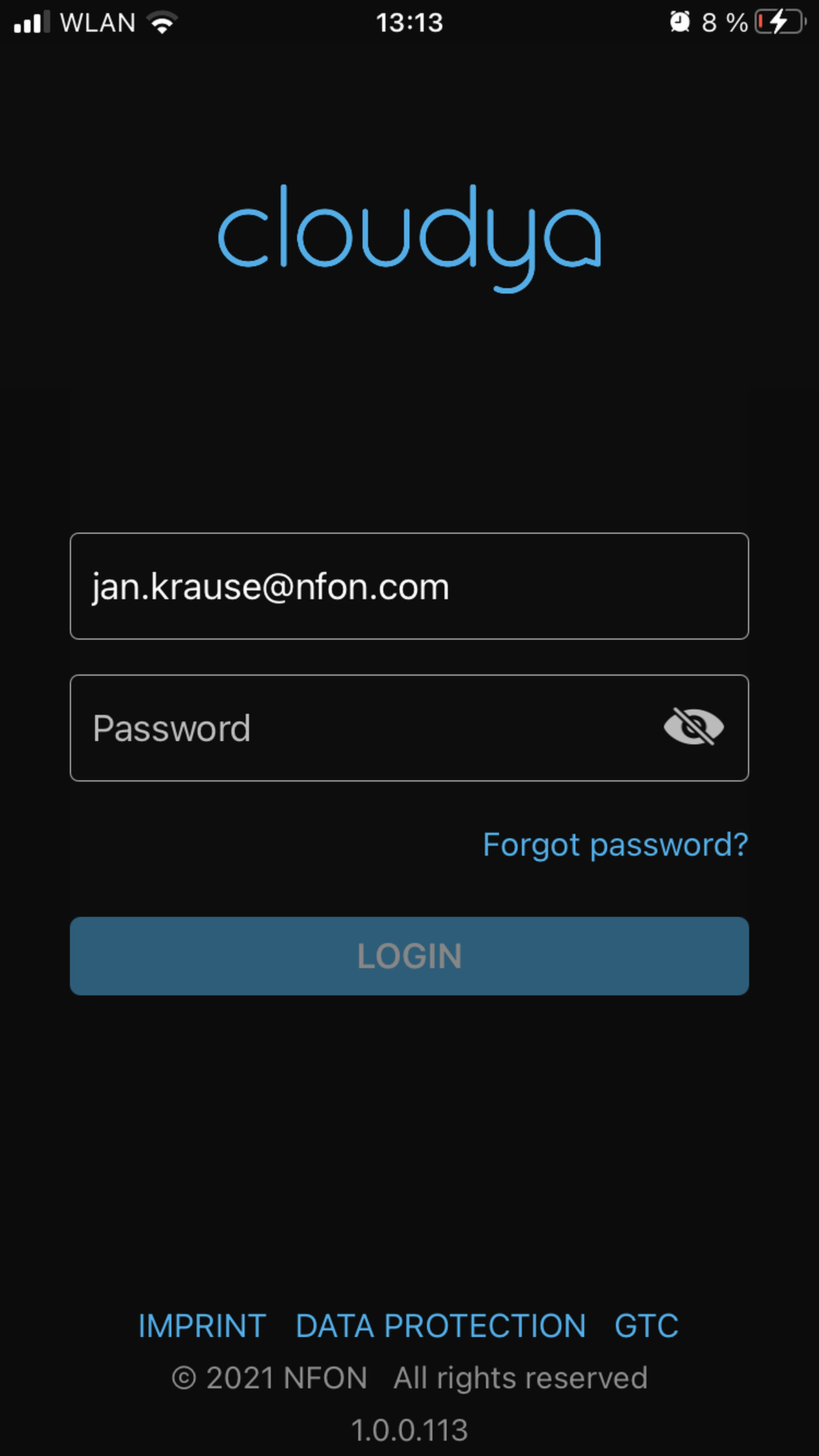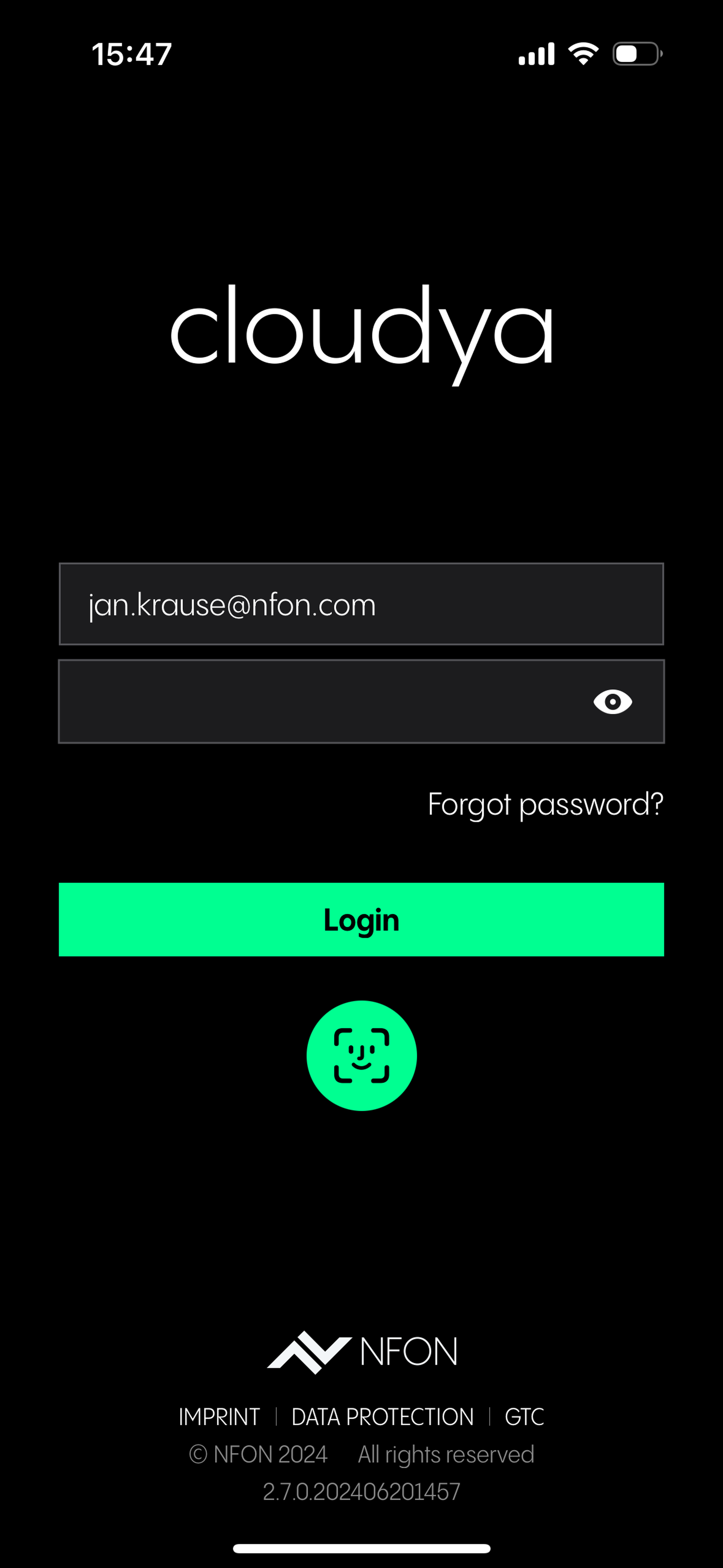 To use the app, you have to login with your 1&1 Business Phone username and password. These are the same credentials you would use at https://start.1und1-businessphone.de/.