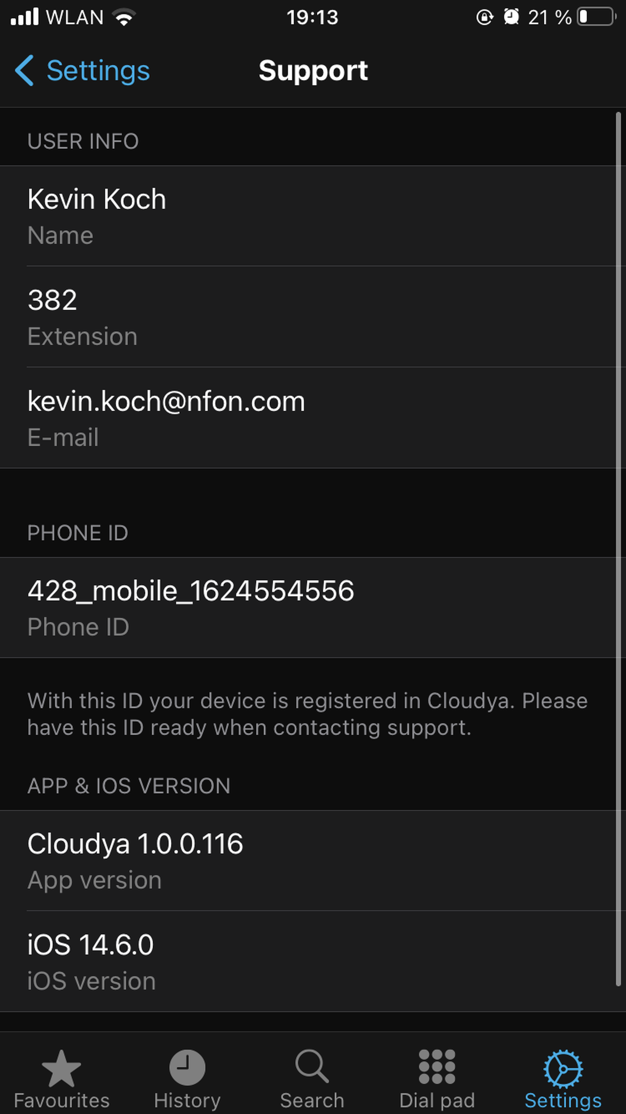 In this view you will find all the necessary information, should you need to contact our Support team.