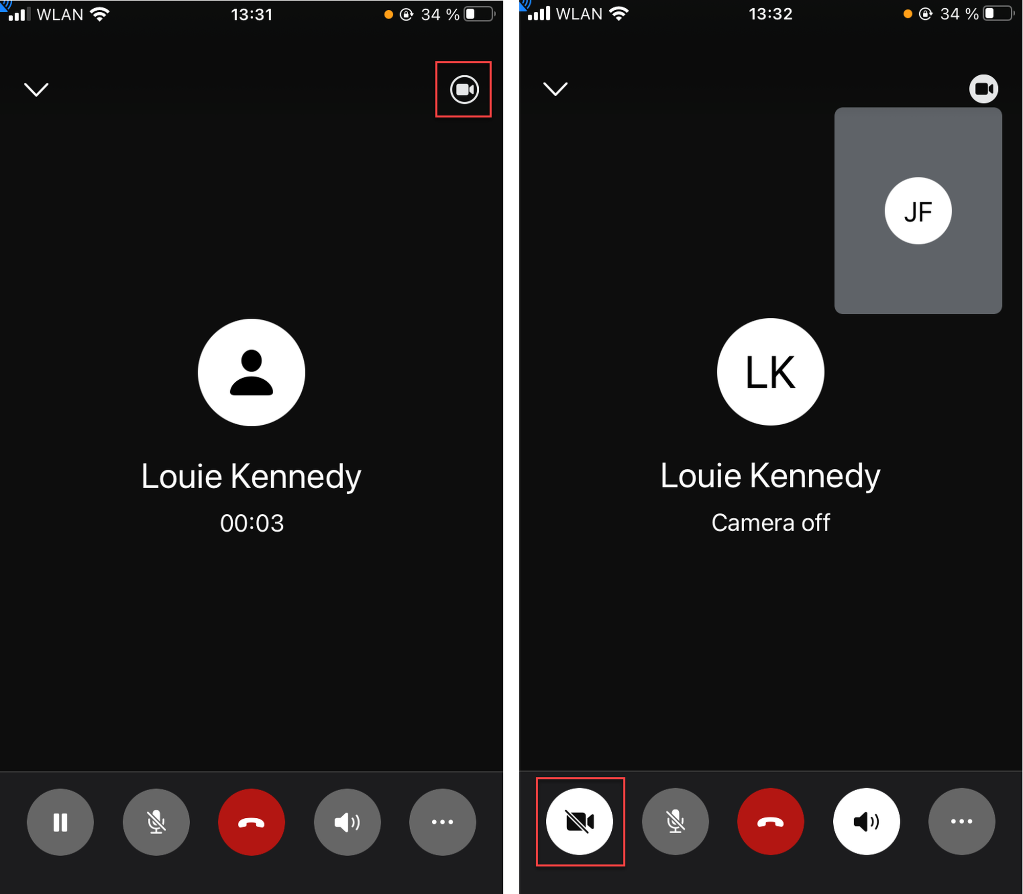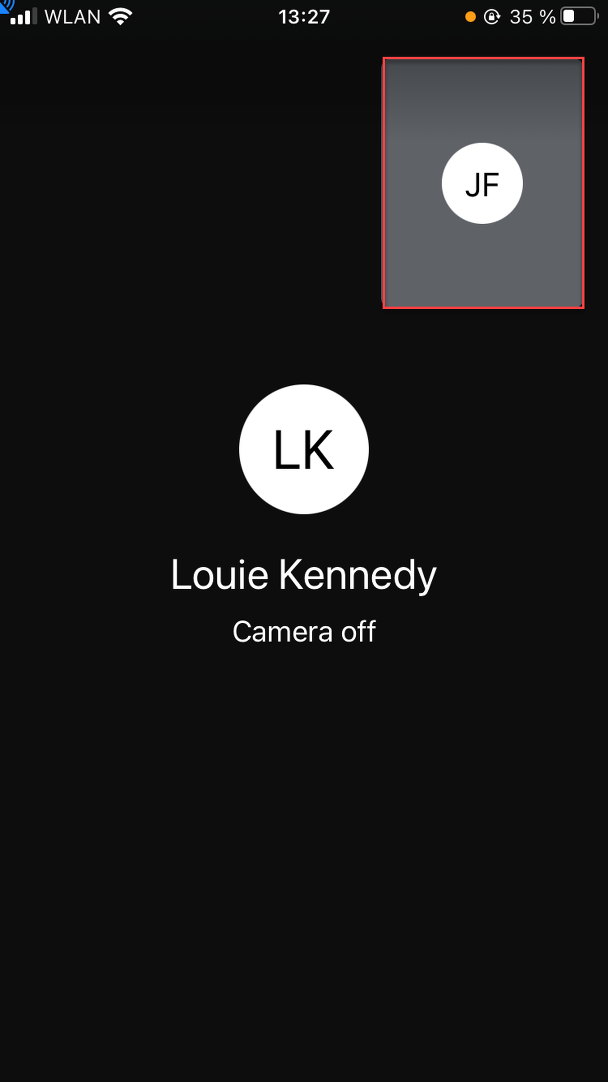 Your own video is shown in a small picture in the top right-hand corner, the other participant's video is shown as a full-size picture. Tap on the small picture to swap the videos.