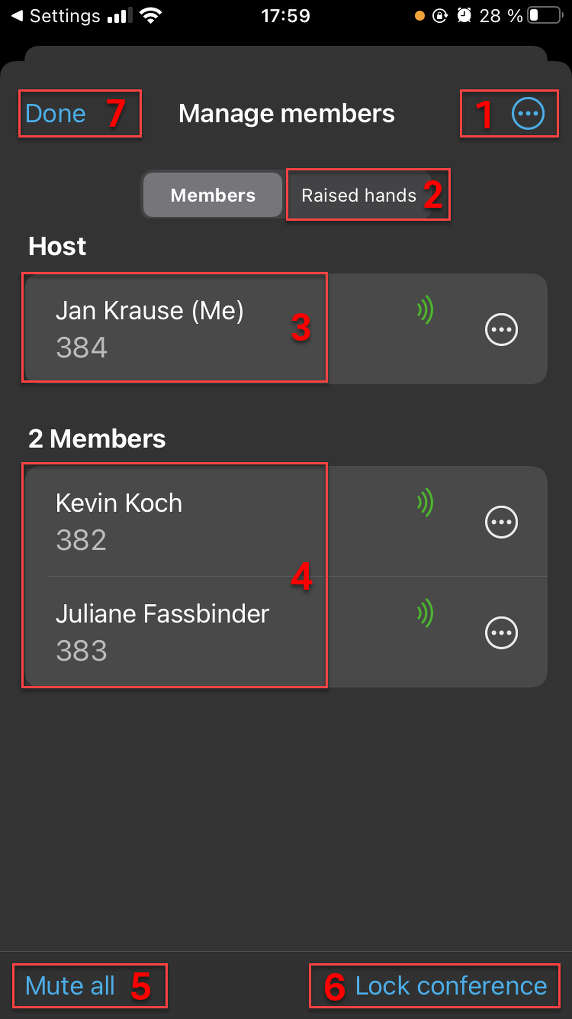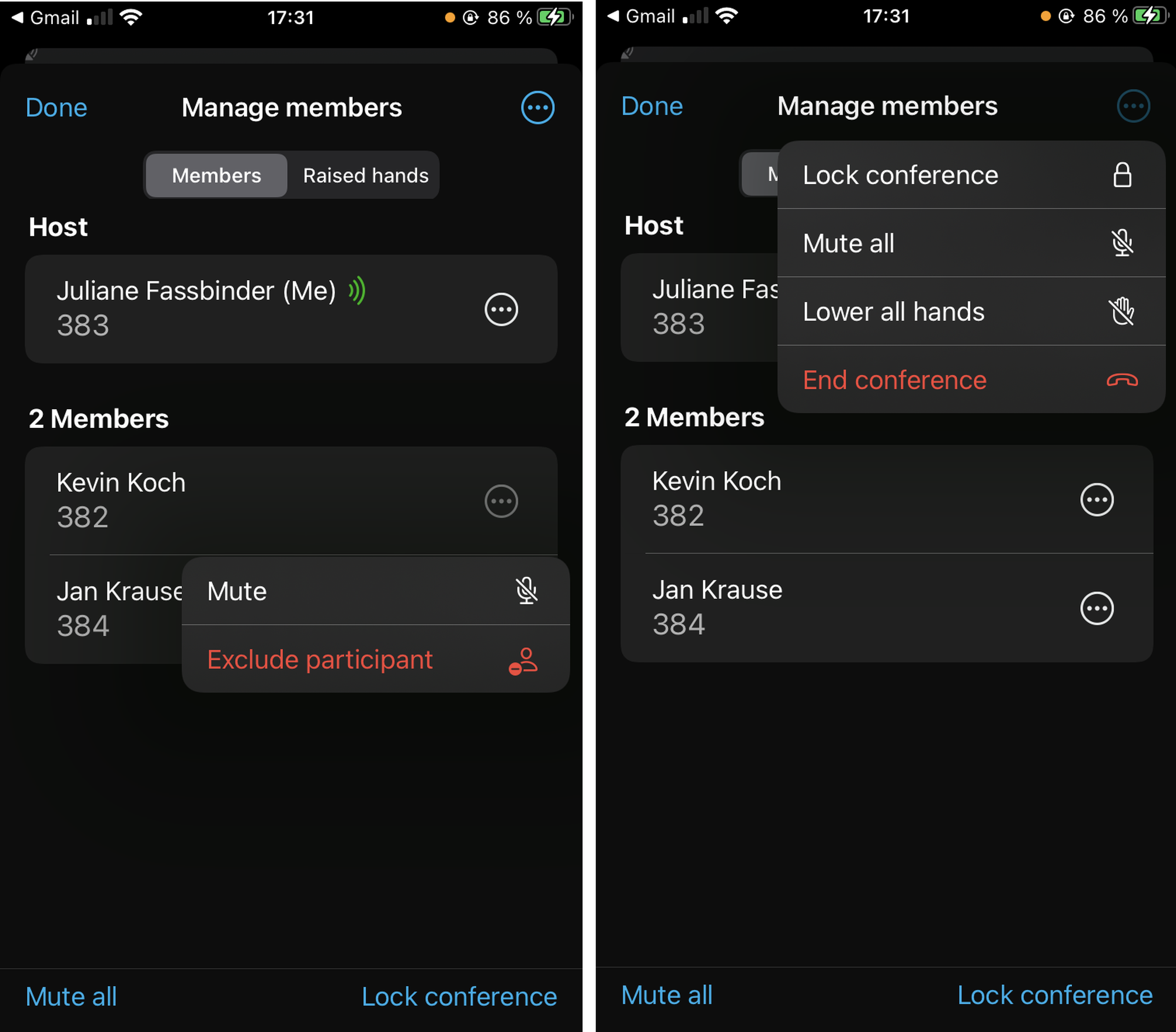 In the Members tab, as a host, you have additional options:
