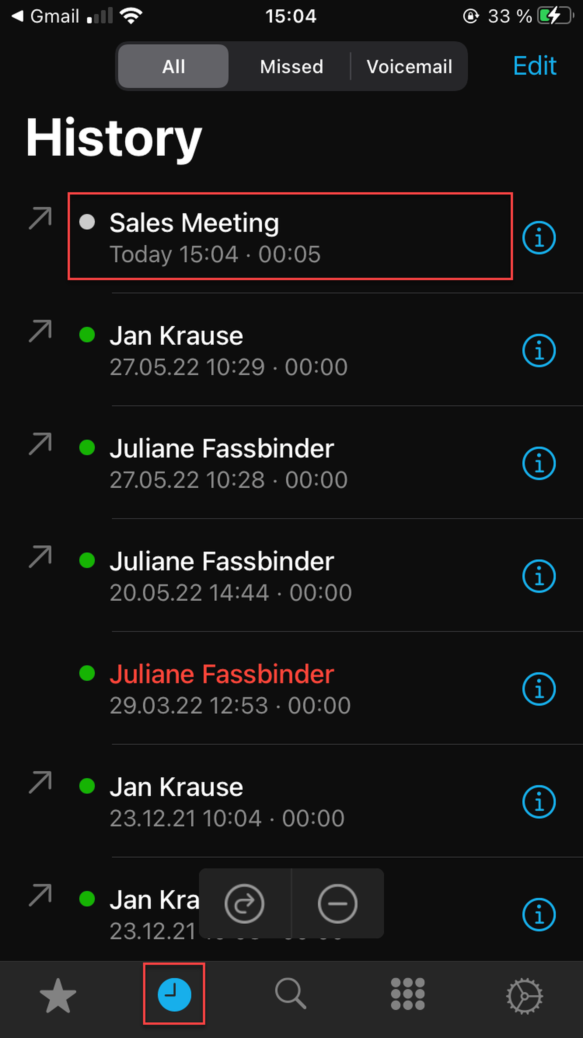 Switch to Missed calles