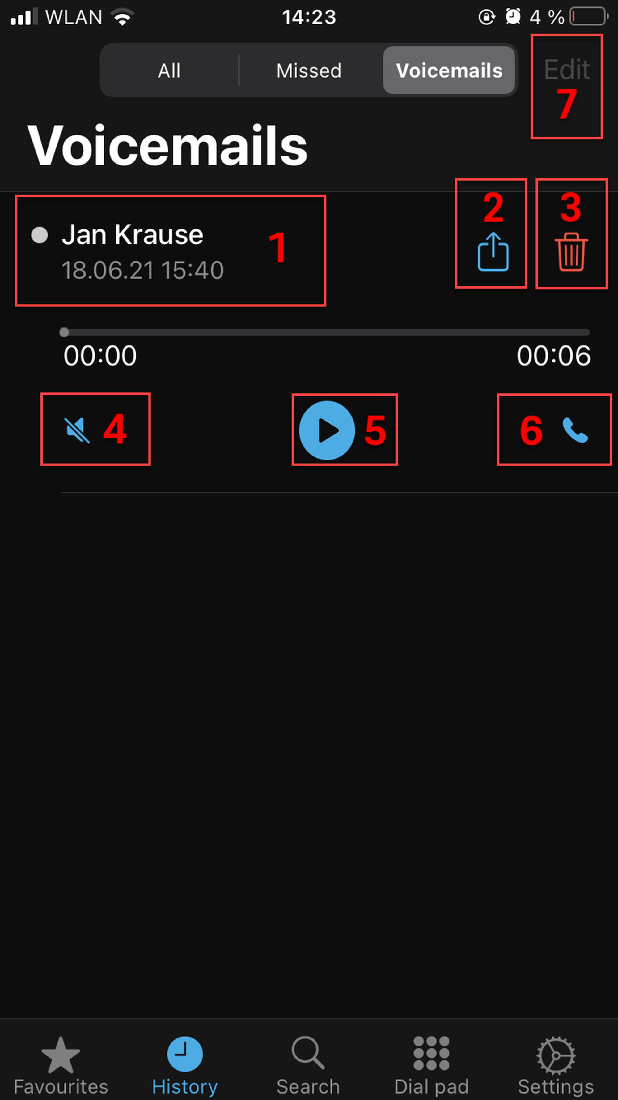 In the Voicemeils tab, you see the list of the voicemails.