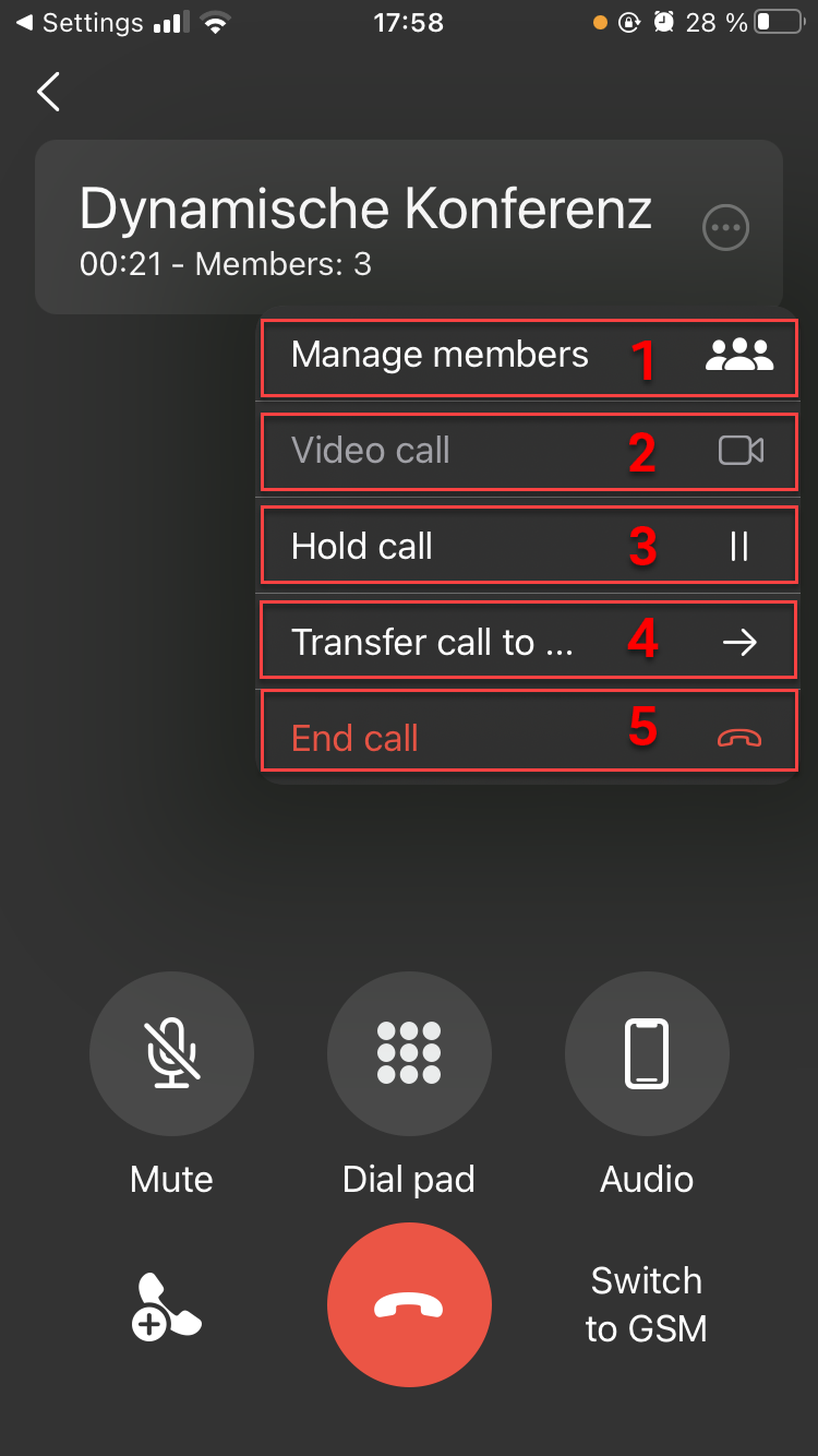 When in an ad-hoc audio conference, you can switch to a video conference (go to Chapter C.3 to see how to create an ad-hoc conference).