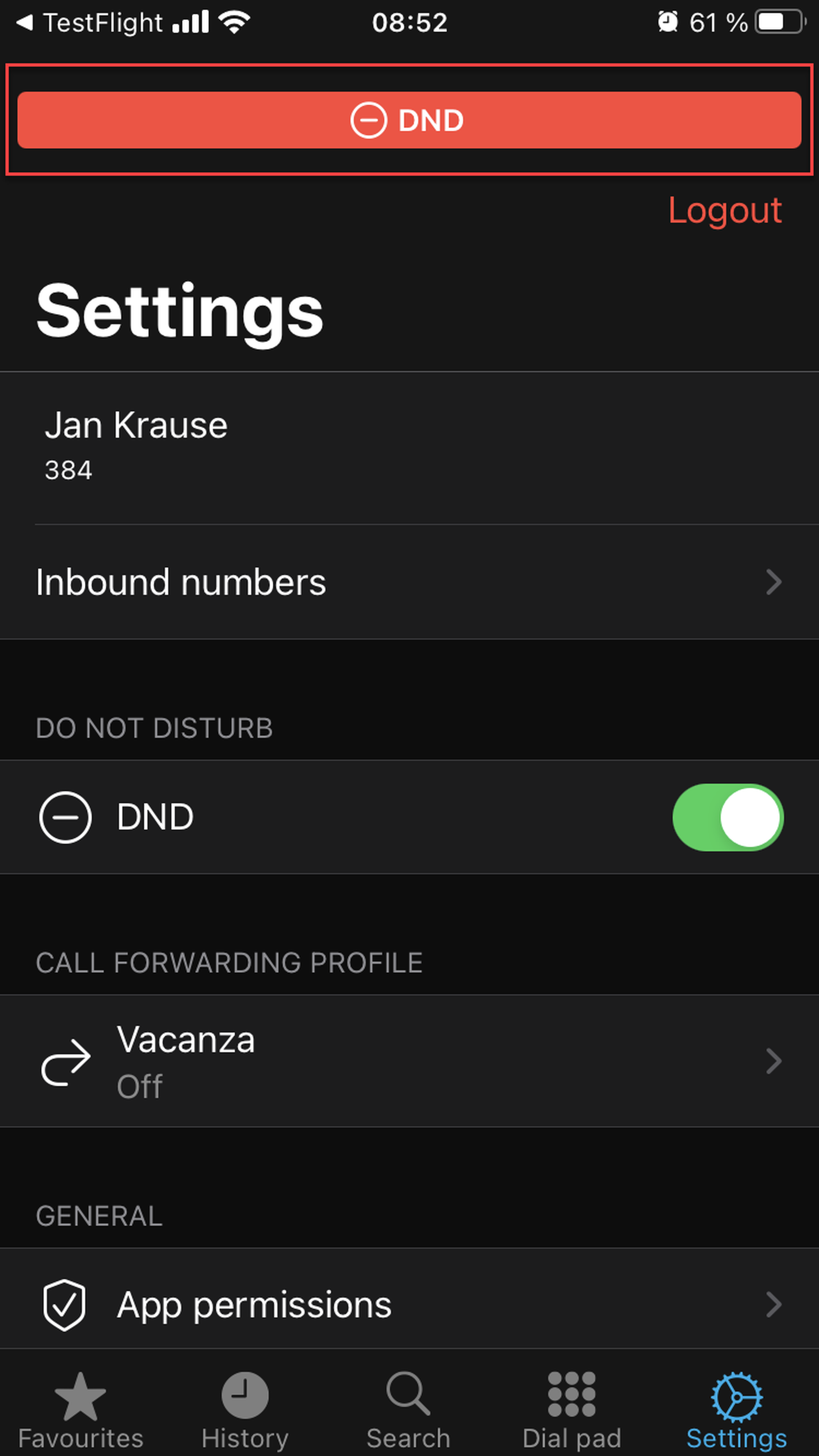 If you activate DND, the red banner appears at the top of the app interface.