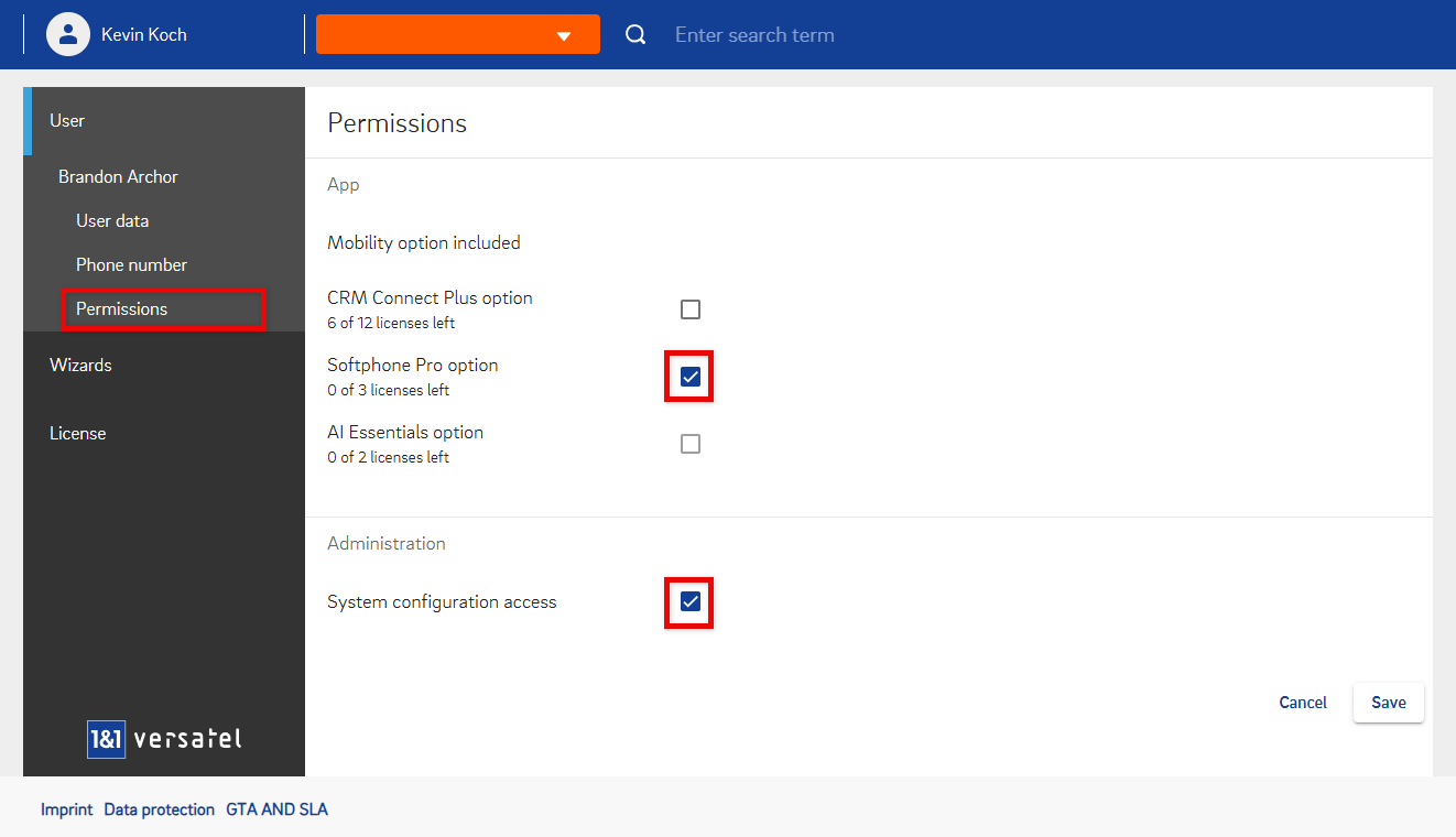 ⇒ Here you can see all the licenses allocated to this user.Tick or untick the boxes to assign to or revoke licenses from this user.