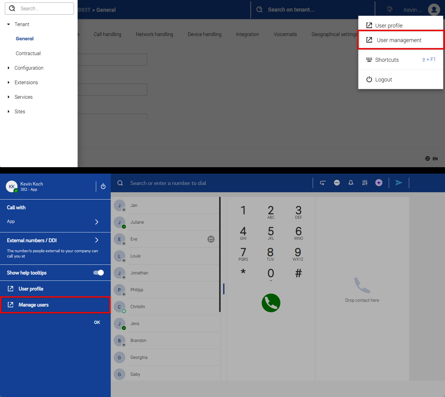 Click on Manage users (Web/Desktop app)/User management (Admin Portal).